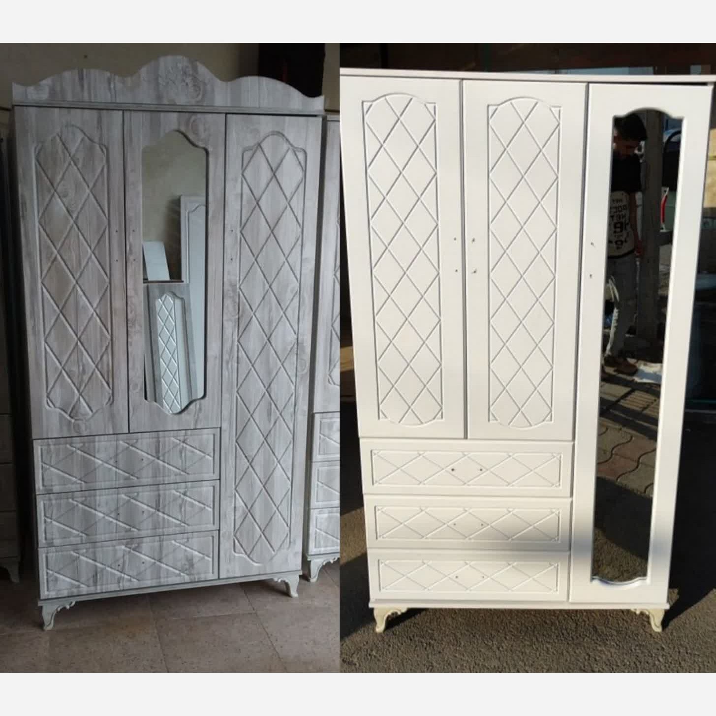 #کمد کمد3در تمام مدل ها رنگ سفید قهوه ای طوسی و آیینه دار🥰👌 دارای کد تخفیف هزینه ارسال مشتری عزیز قبل از خرید از قسمت چت استعلام قیمت بگیرید. ارسال از طریق باربری بیمه شده به سراسر کشور