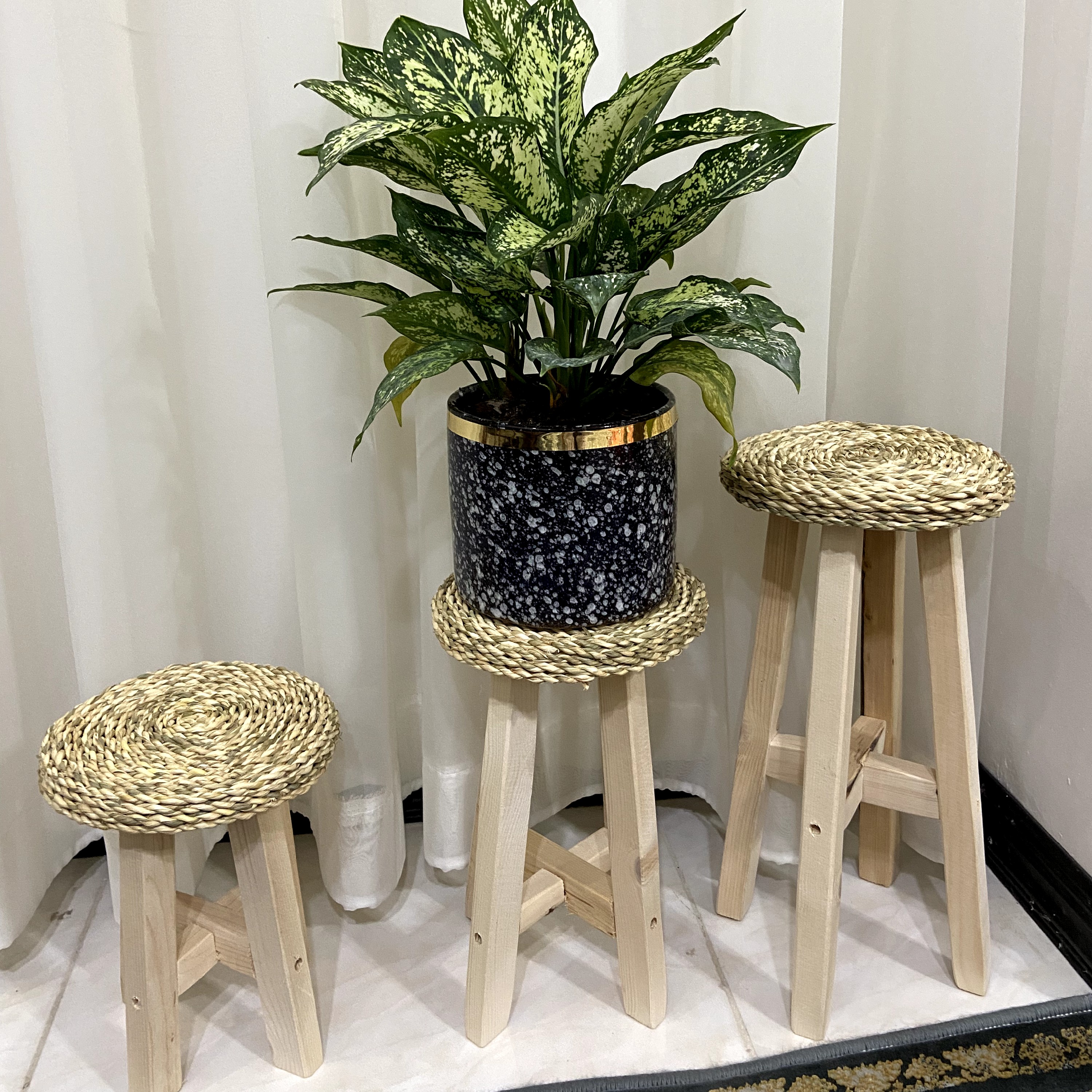 استند و پایه گلدان حصیری قطر 20 سانت در ارتفاع مختلف مبلمونسرا مدل 258694