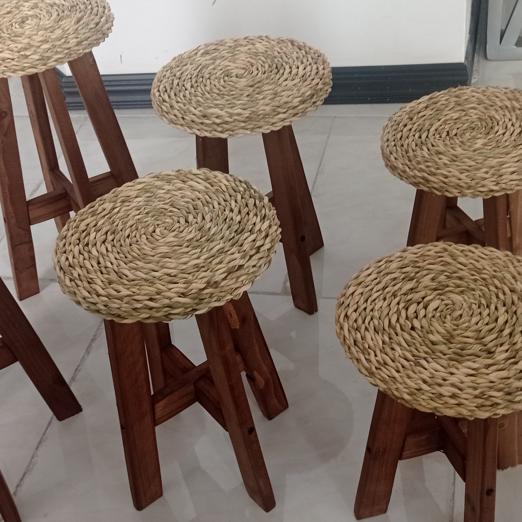 پایه گلدان حصیری 3تایی در 3 سایز 25.32.40 سانت قطر روی استند 25 سانت در دو رنگ قهوای و رنگ چوب
