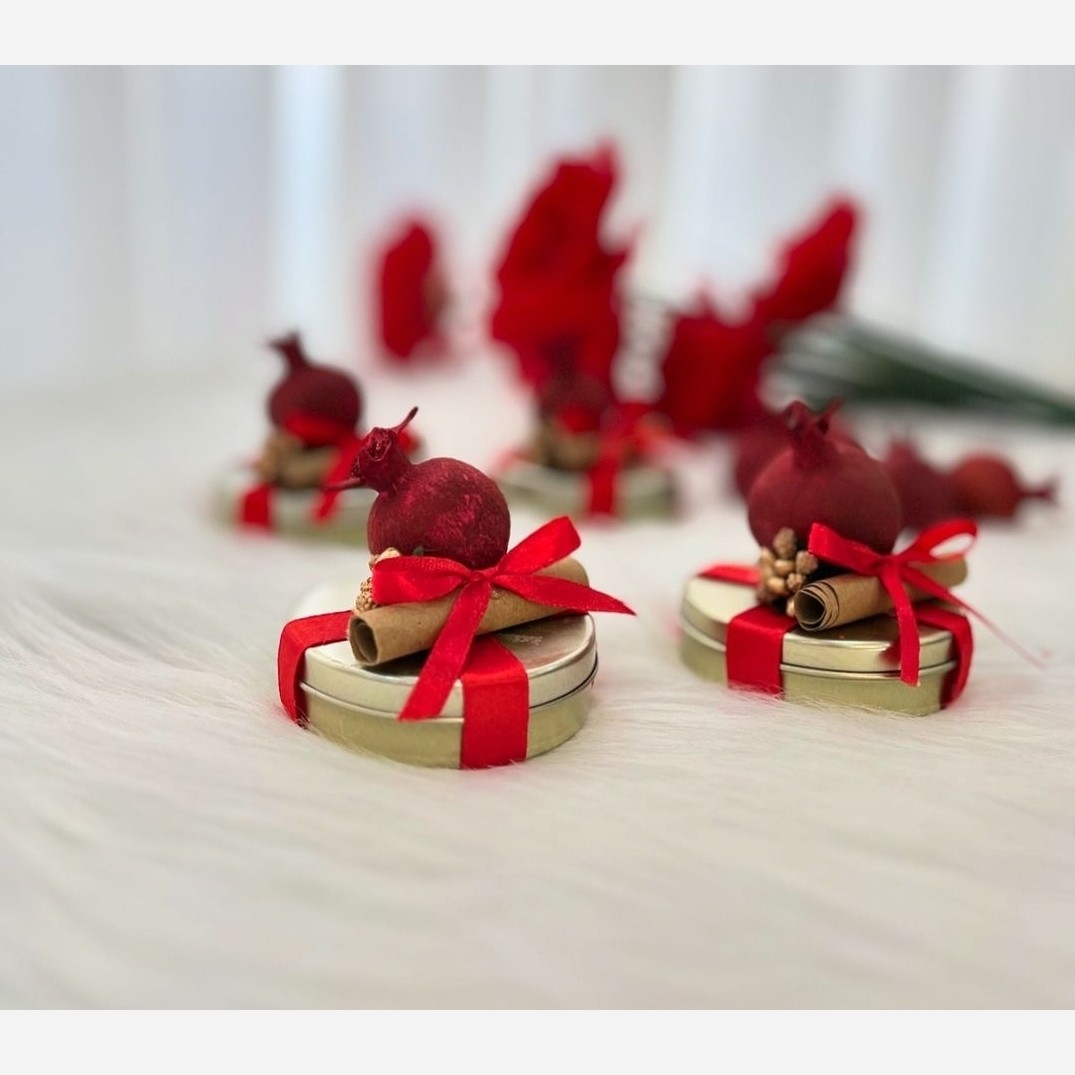 گیفت قوطی فلزی بادیزاین یلدا داخل قوطی فلزی شمع هست دیزاینش انار خشک به همراه فال حافظ