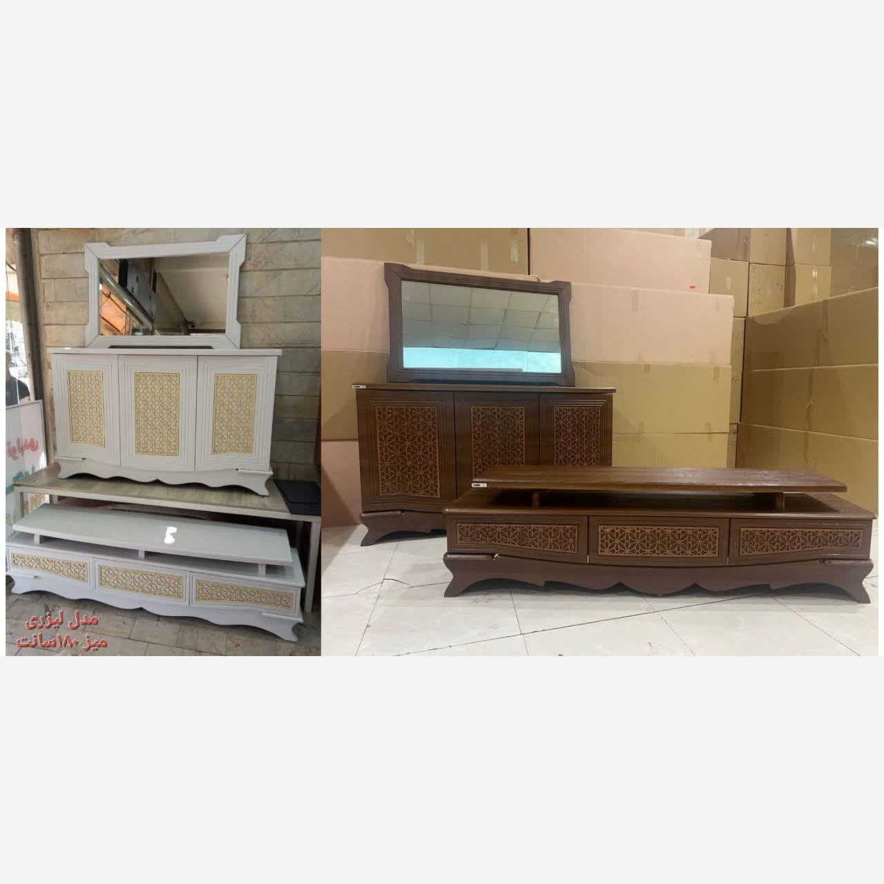 #ست لیزری 🌱جنس کامل ام دی اف 🌱کیفیت عالی 💸اینه کنسول 💸میز تیوی180سانت 💸جاکفشی ♦️مدیریت و ثبت سفارش👇🌱 دارای کد تخفیف هزینه ارسال مشتری عزیز قبل از خرید از قسمت چت استعلام قیمت بگیرید. ارسال از طریق باربری بیمه شده به سراسر کشور