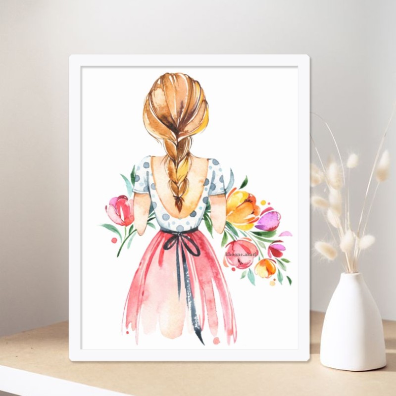 تابلو مدل دکوراتیو دختر و گل رنگی کد 901 مبلمونسرا مدل 268525