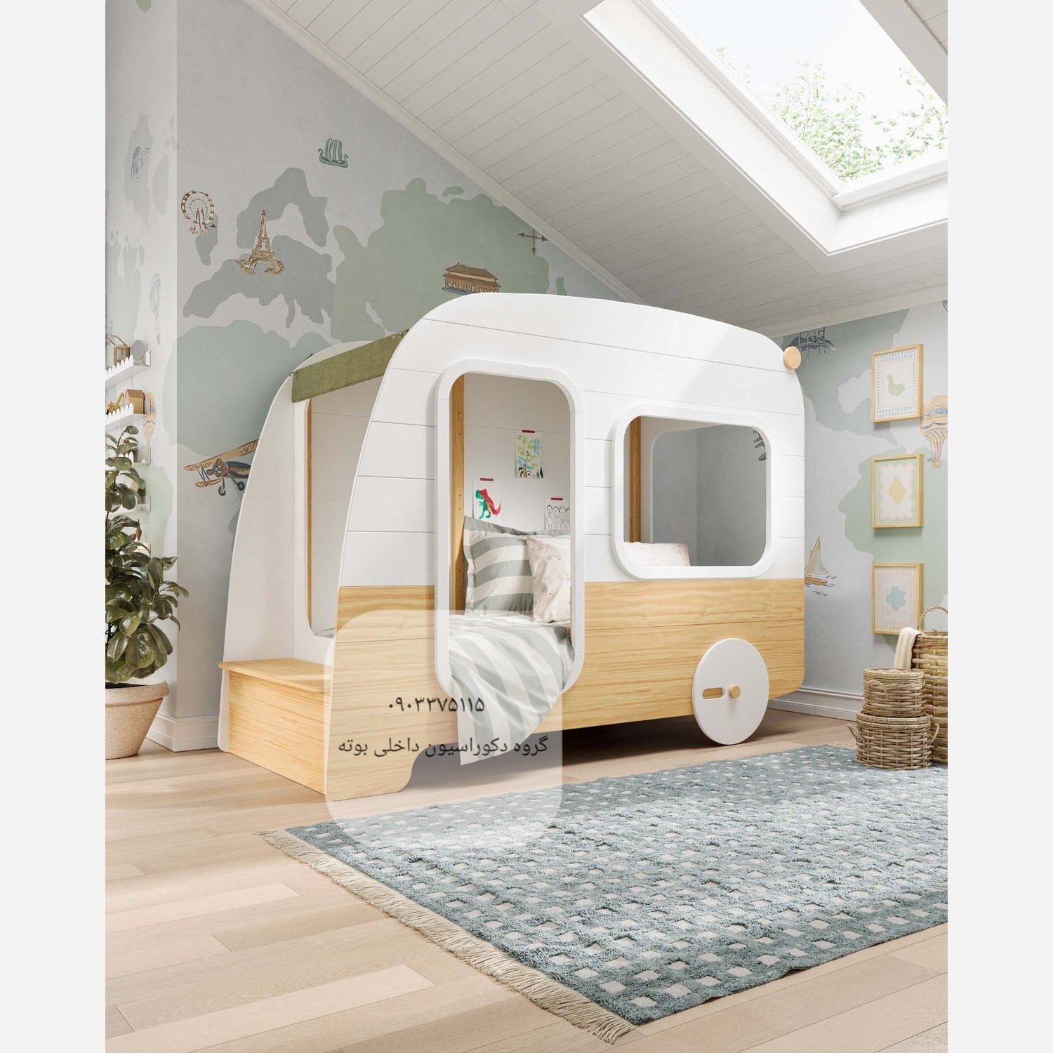 تخت کودک طرح مینیبوس بسیار با کیفیت توسط گروه بوته ساخته میشود مدت زمان آماده سازی 4هفته
