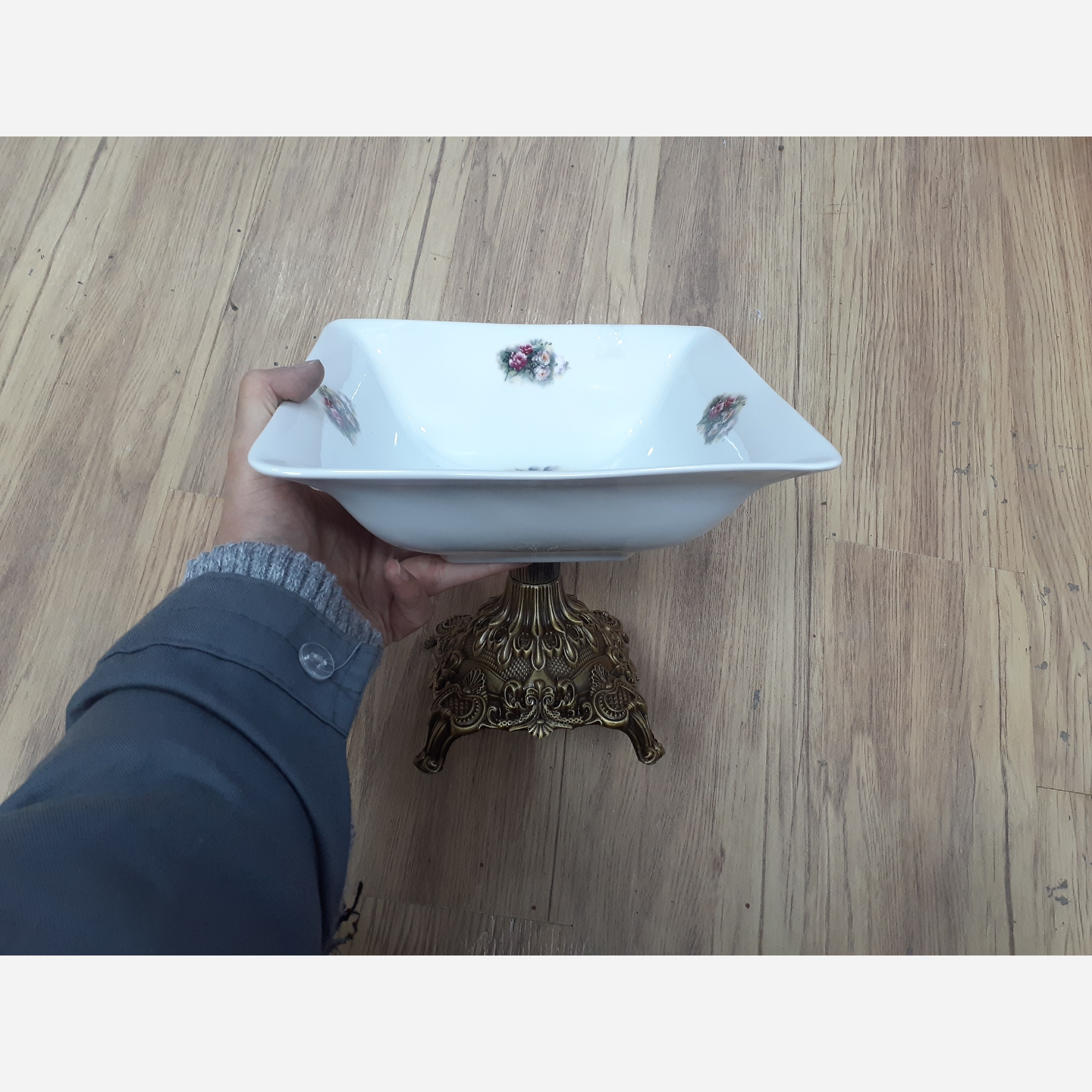 شکلات خوری 4گوش چینی گلدار پایه دار سایز 20 در 20 مبلمونسرا مدل 295329