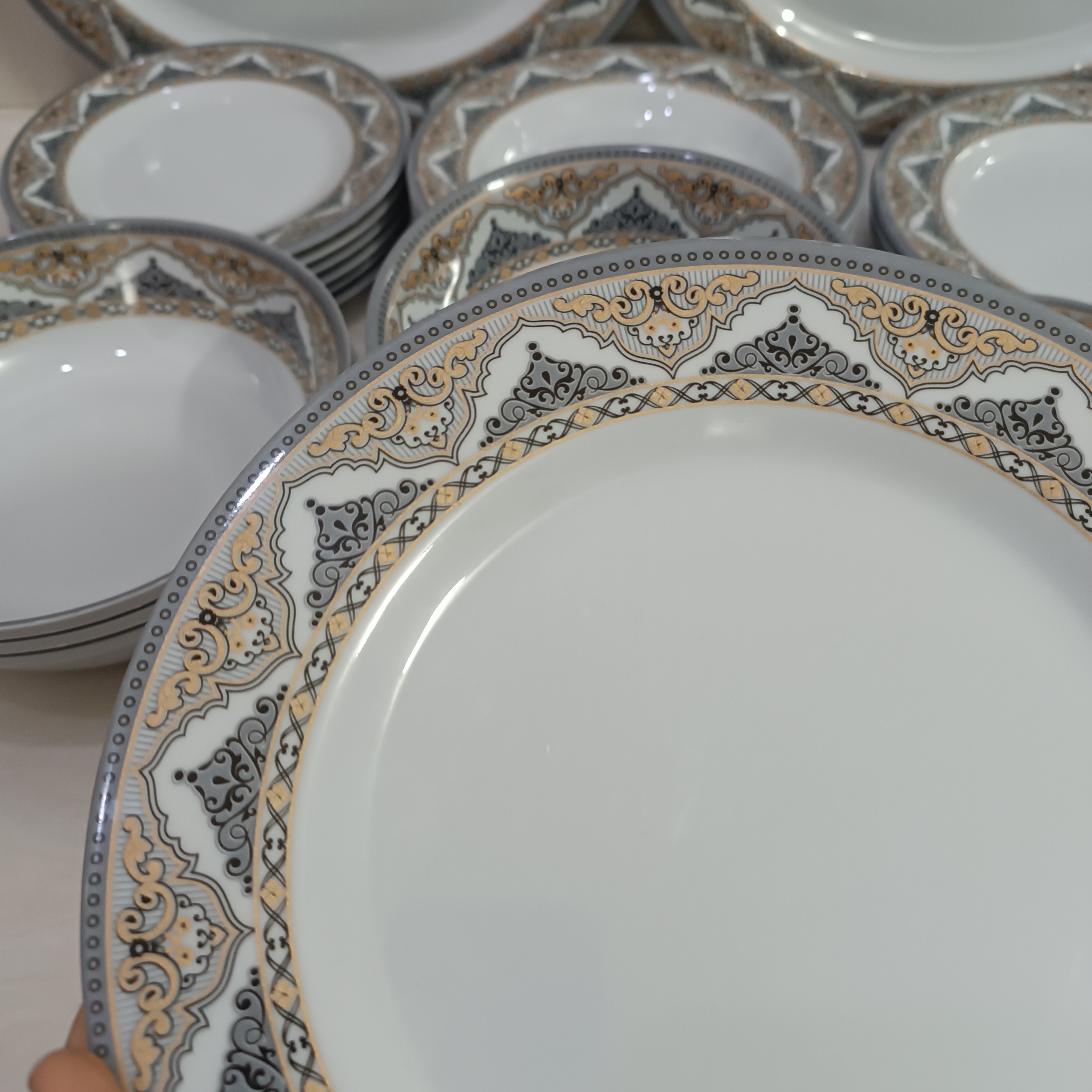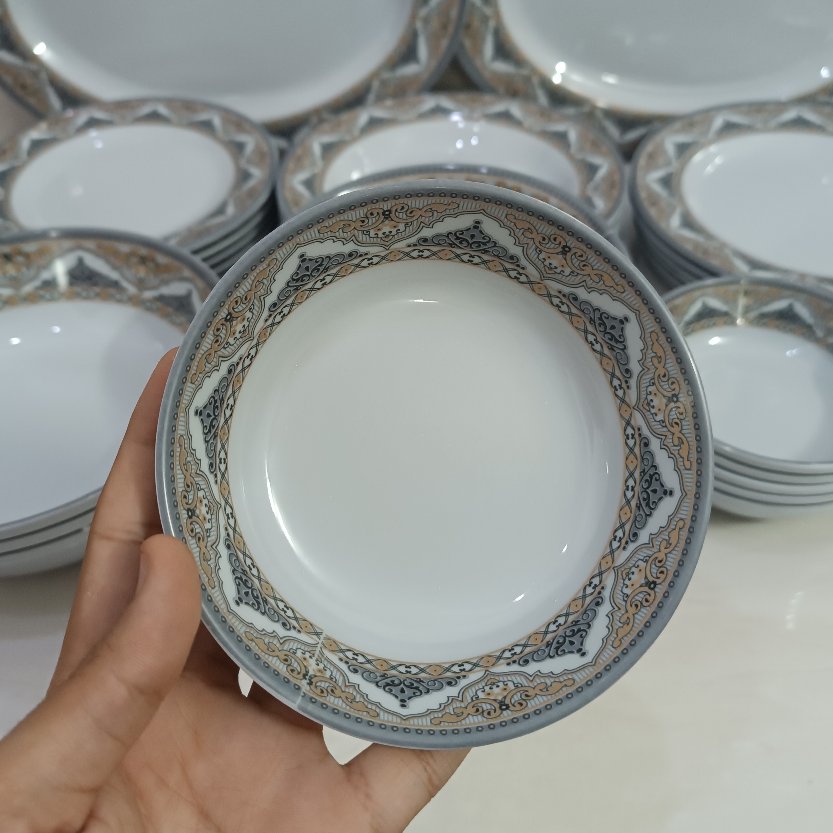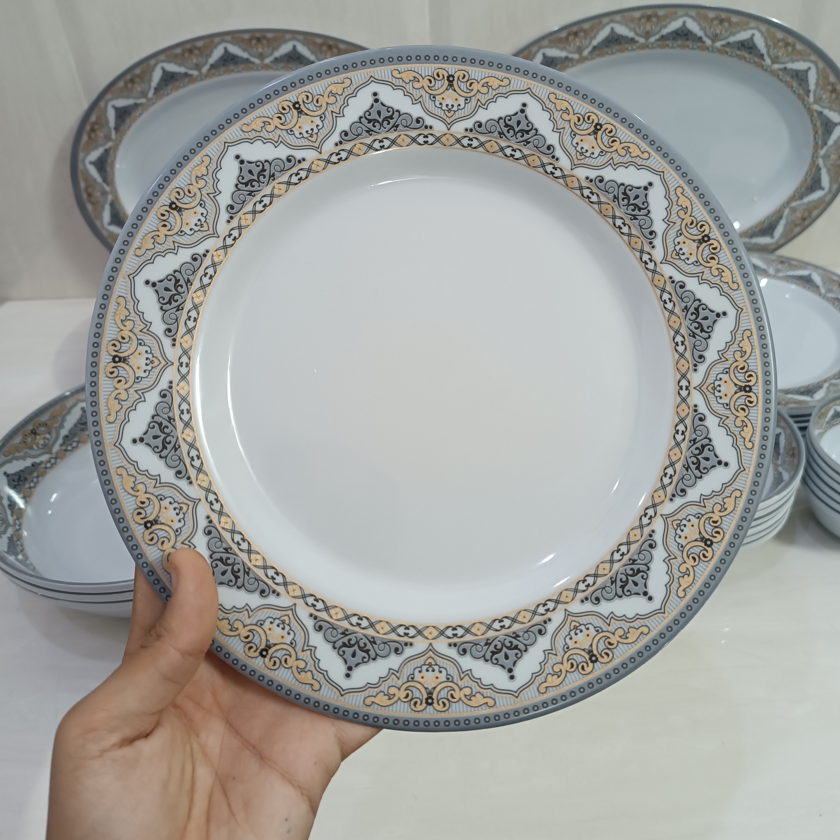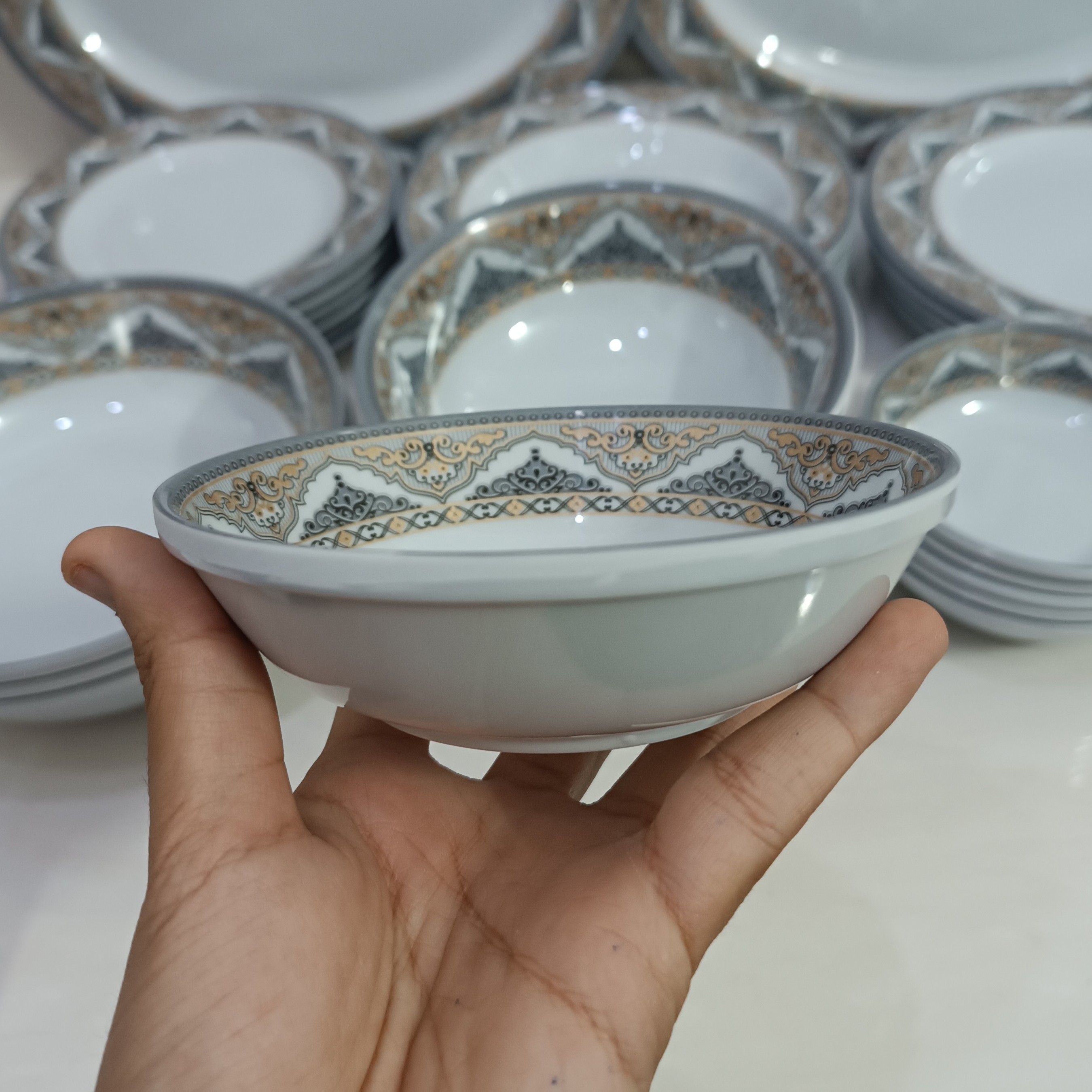 سرویس ملامین 41 پارچه گرد طرح دار مارک شیرکوه یزد دارای استاندارد سرویس شامل 6 عدد بشقاب برنج خوری سایز قطر 23 6 عدد بشقاب خورشت سایز قطر 21.5 6 عدد بشقاب میوه سایز قطر 20 6 عدد کاسه ماست سایز قطر 12.5 × ارتفاع 3.5 6 عدد کاسه آبگوشت سایز قطر 16 × ارتفاع 6 6 عدد. کاسه ترشی ستیز قطر 9.5× 4 3 عدد کاسه سالاد قطر 20× 6 2 عدد دیس برنج 35×25