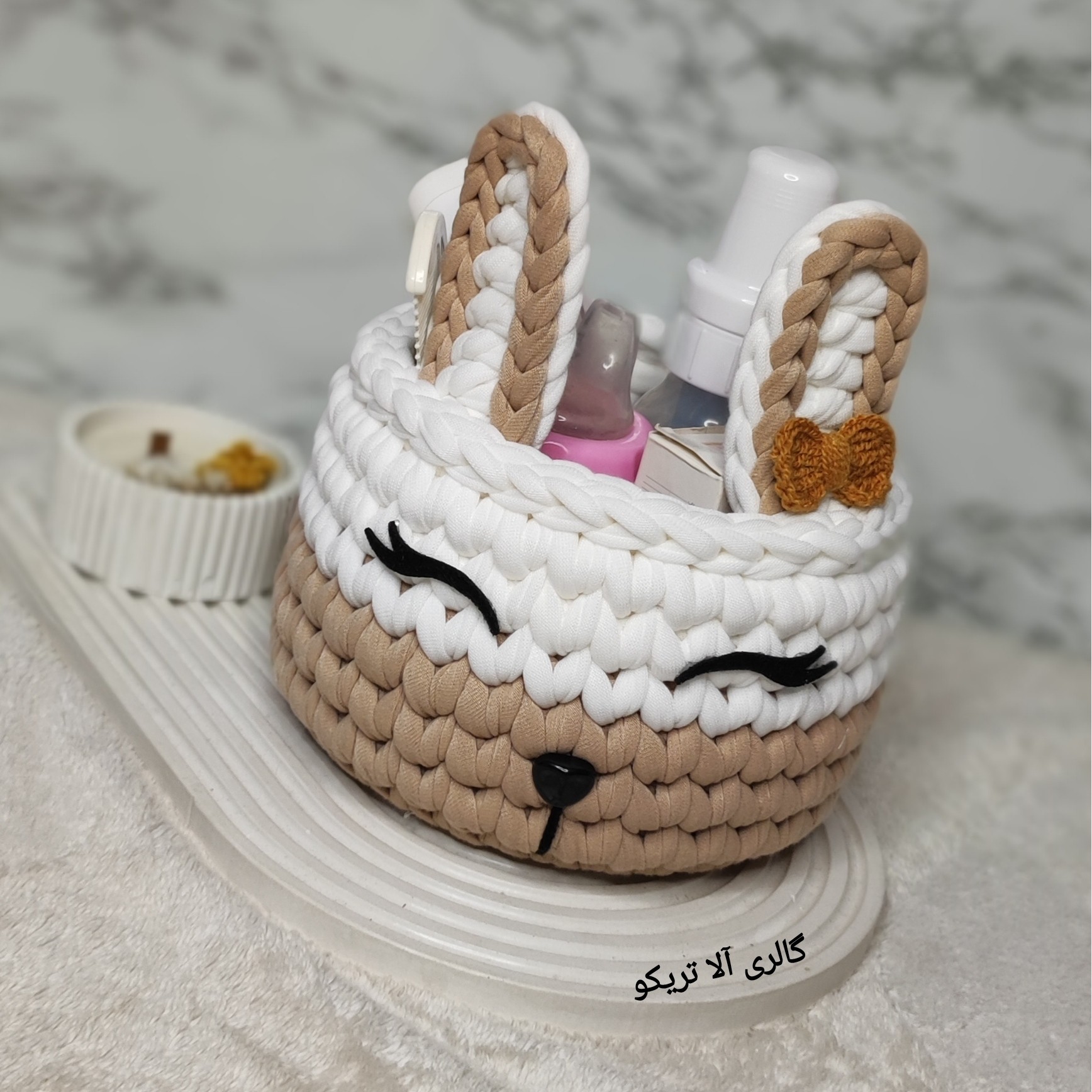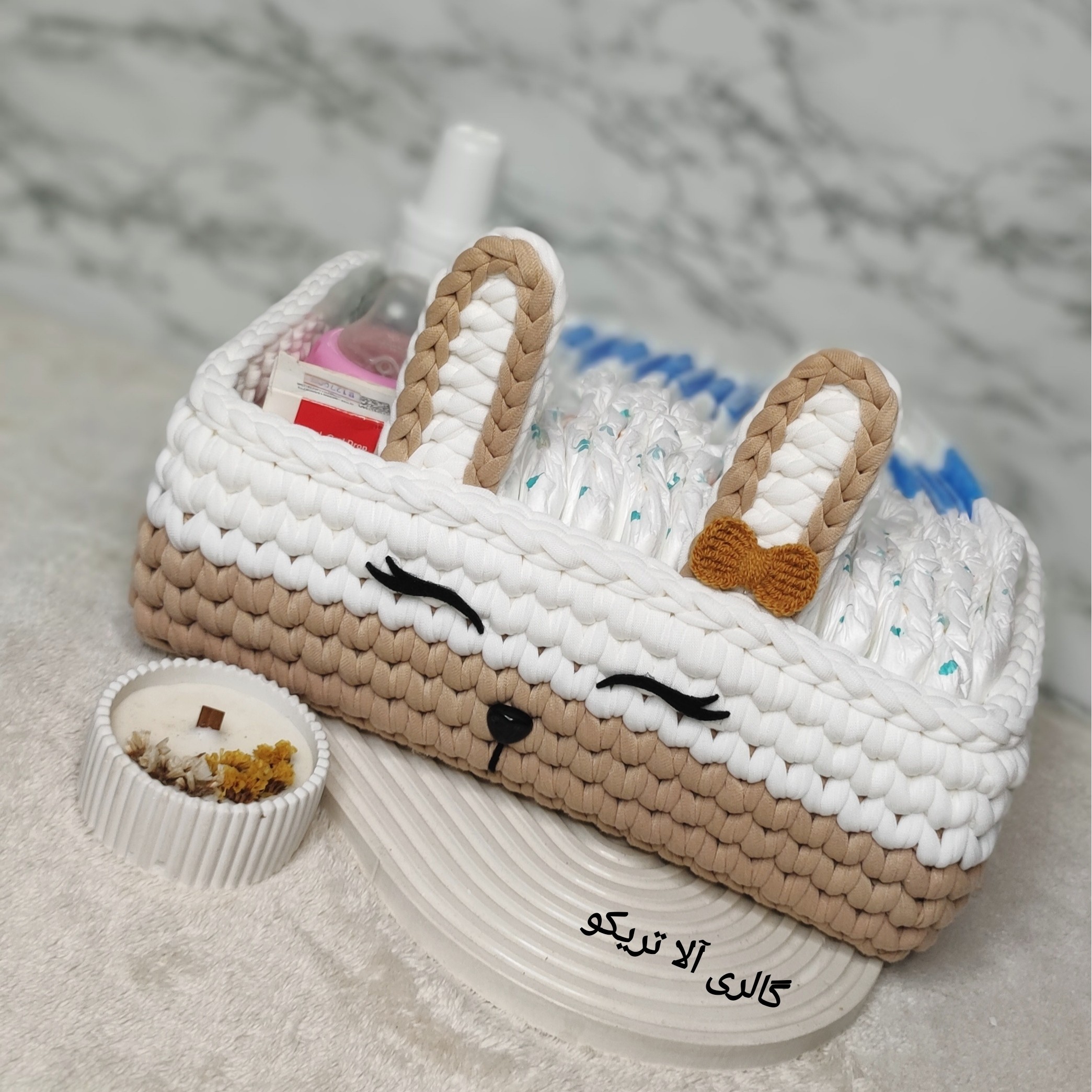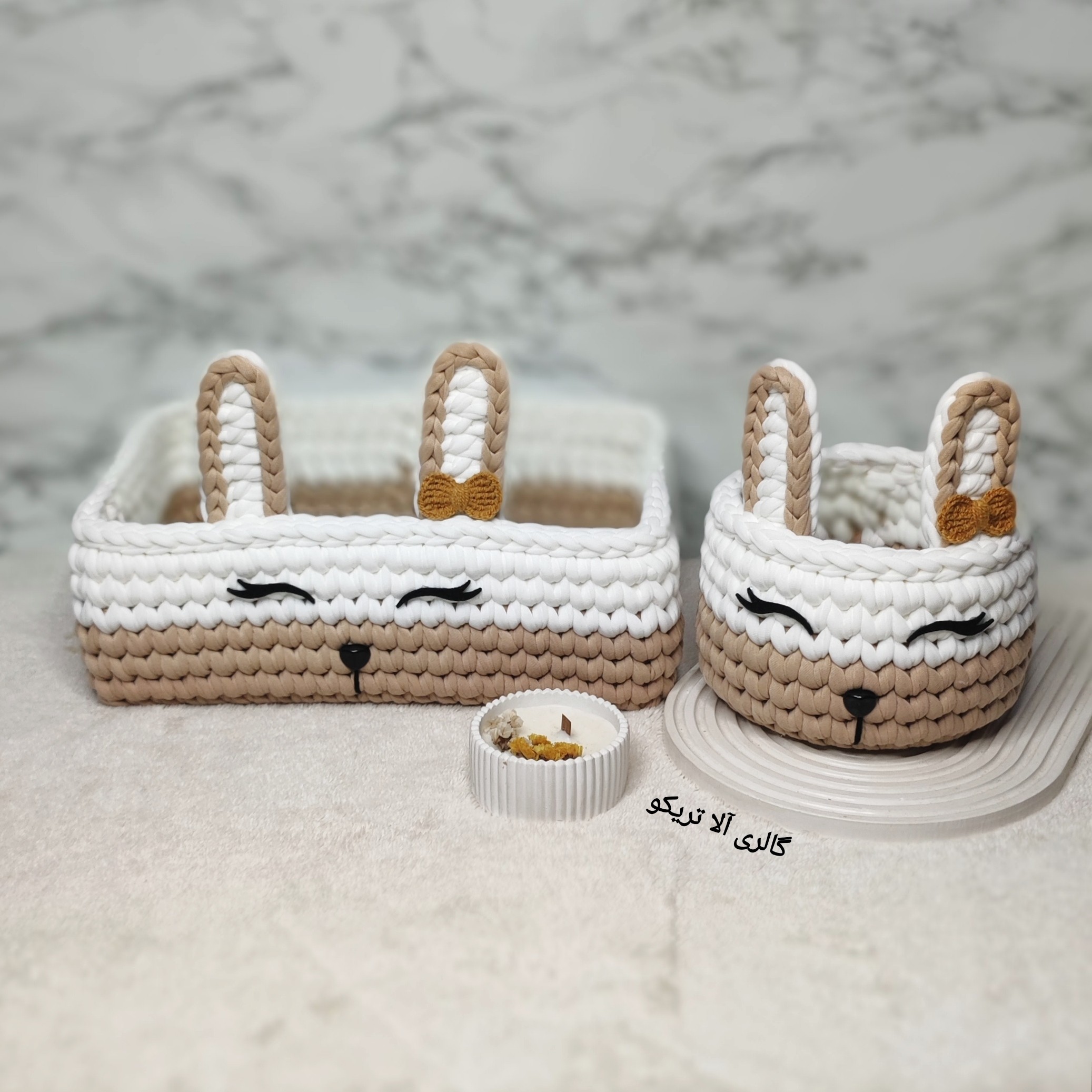 سبد تریکو ست 2 عددی باکس نظم دهنده وسایل سیسمونی نوزاد لوسیون پوشک سایز بزرگ مدل خرگوش نود کرمی سفید گالری آلا تریکو مبلمونسرا مدل 291027