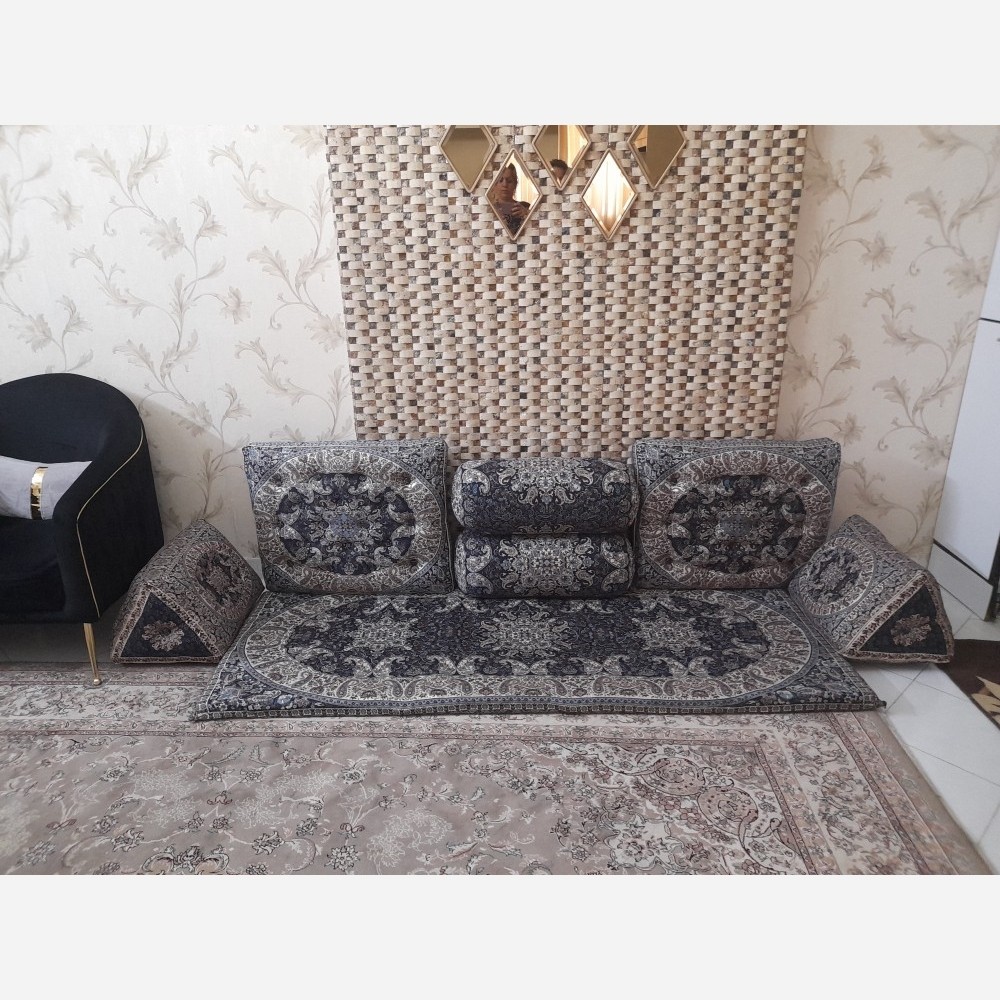 ست شاه نشین ترمه با کیفیت سورمه ای مبلمونسرا مدل 212848