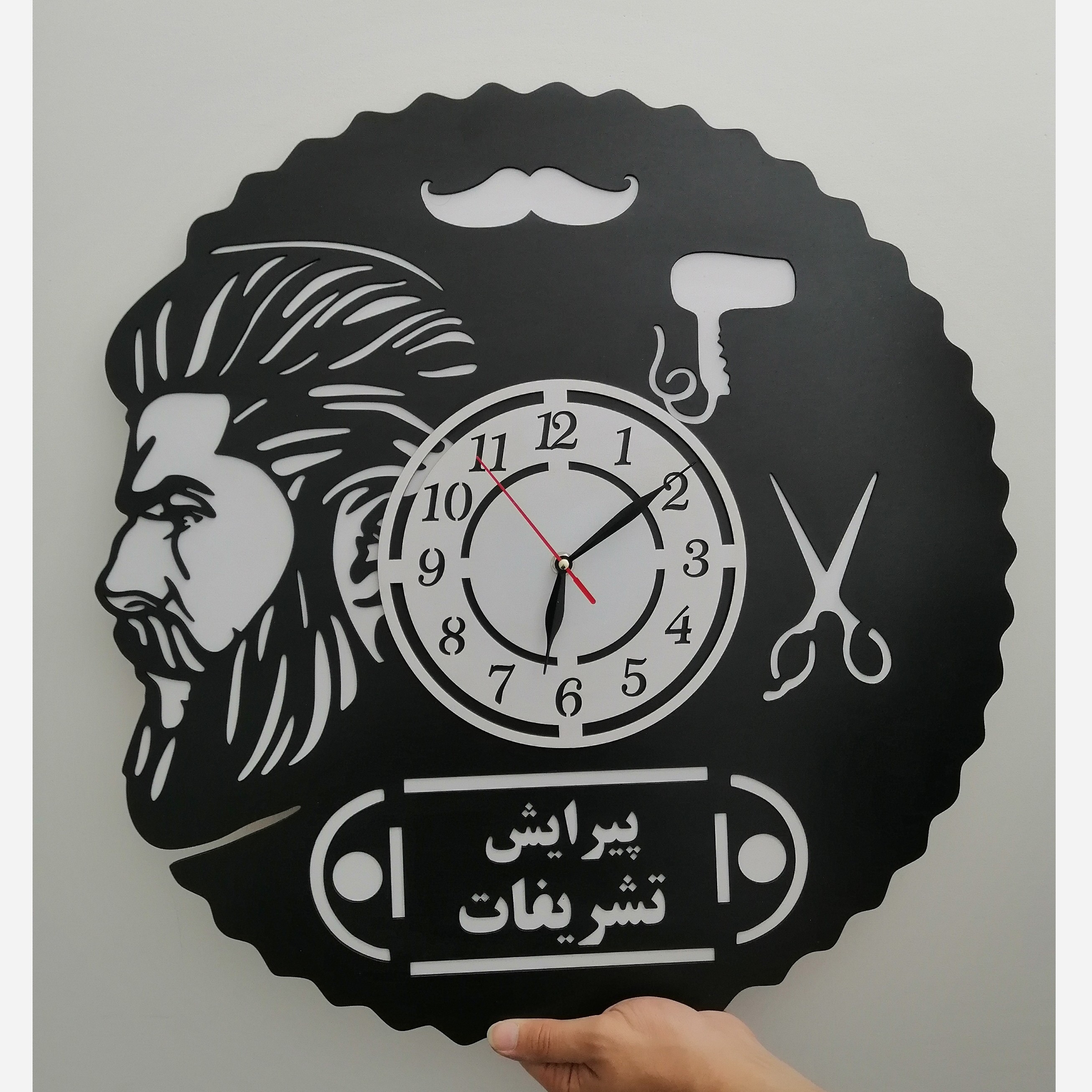 ساعت دیواری آرایشگاه مردانه با چاپ اسم رایگان مبلمونسرا مدل 238129