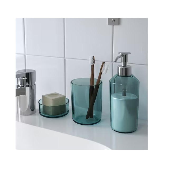 شامل: ۱ عدد صابونپاش، ۳۴ cl (قطر ۷ سانتیمتر، ارتفاع ۱۹ سانتیمتر)، ۱ جای مسواک (قطر ۸ سانتیمتر، ارتفاع ۱۰.۳ سانتیمتر) و ۱ سینی (قطر ۸.۵ سانتیمتر).