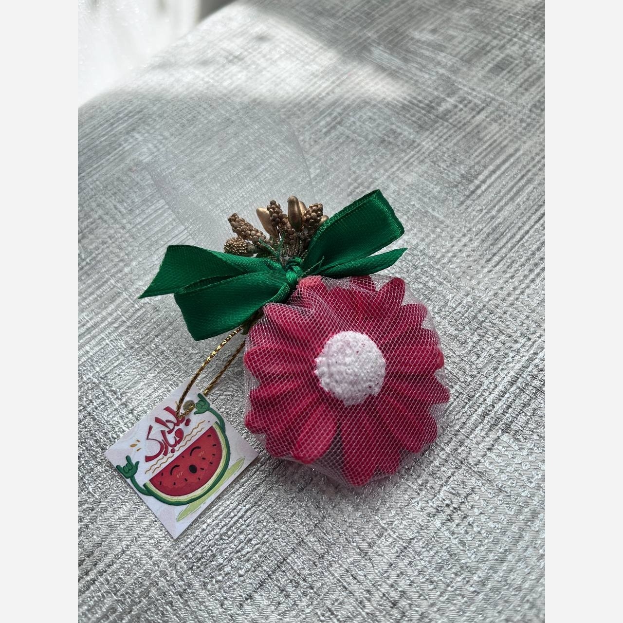 شمع تولید شده از پارافین با کیفیت و تزئینات آن با روبان ساتن است