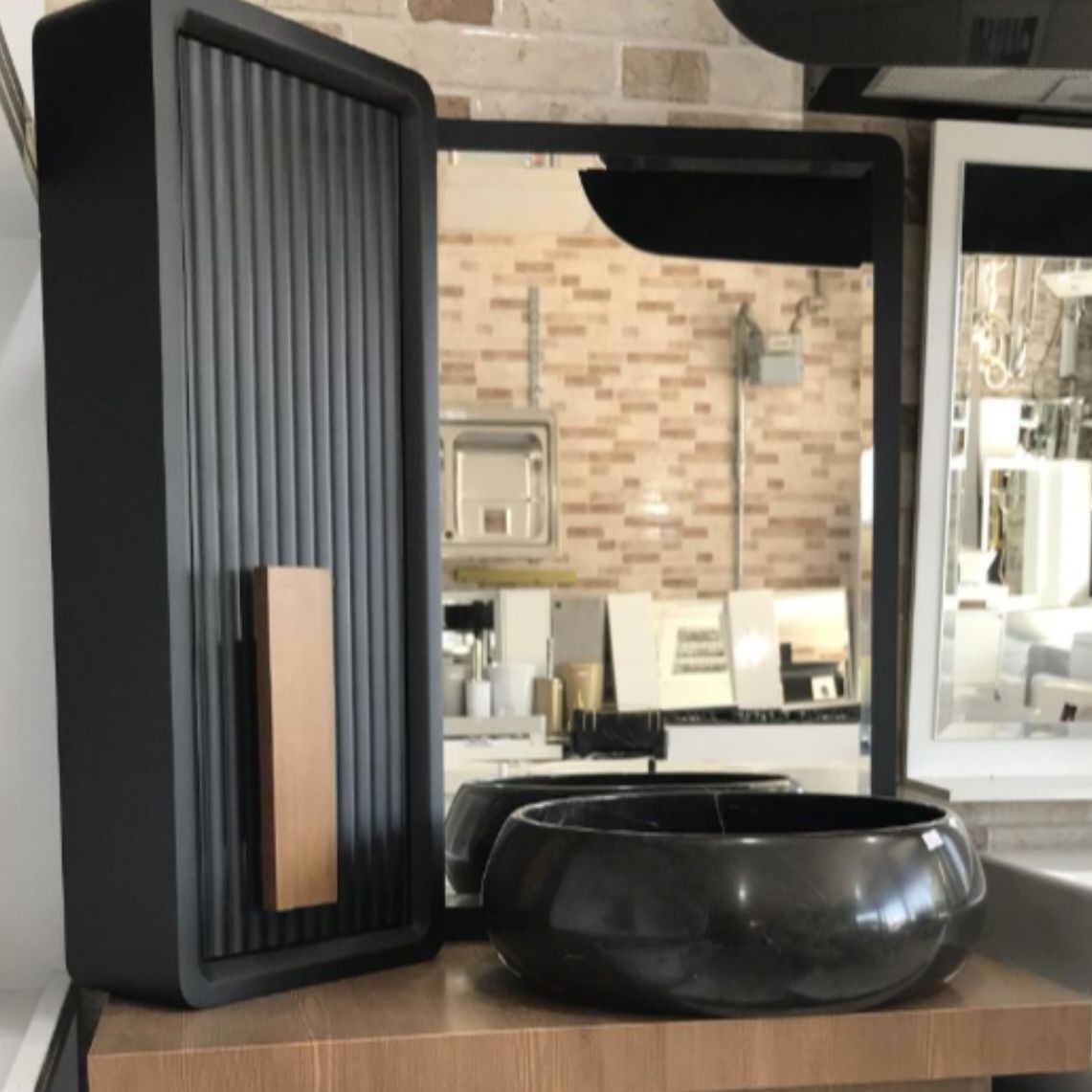 آینه و باکس ضد آب طوسی با ورق بامبو ابعاد 70