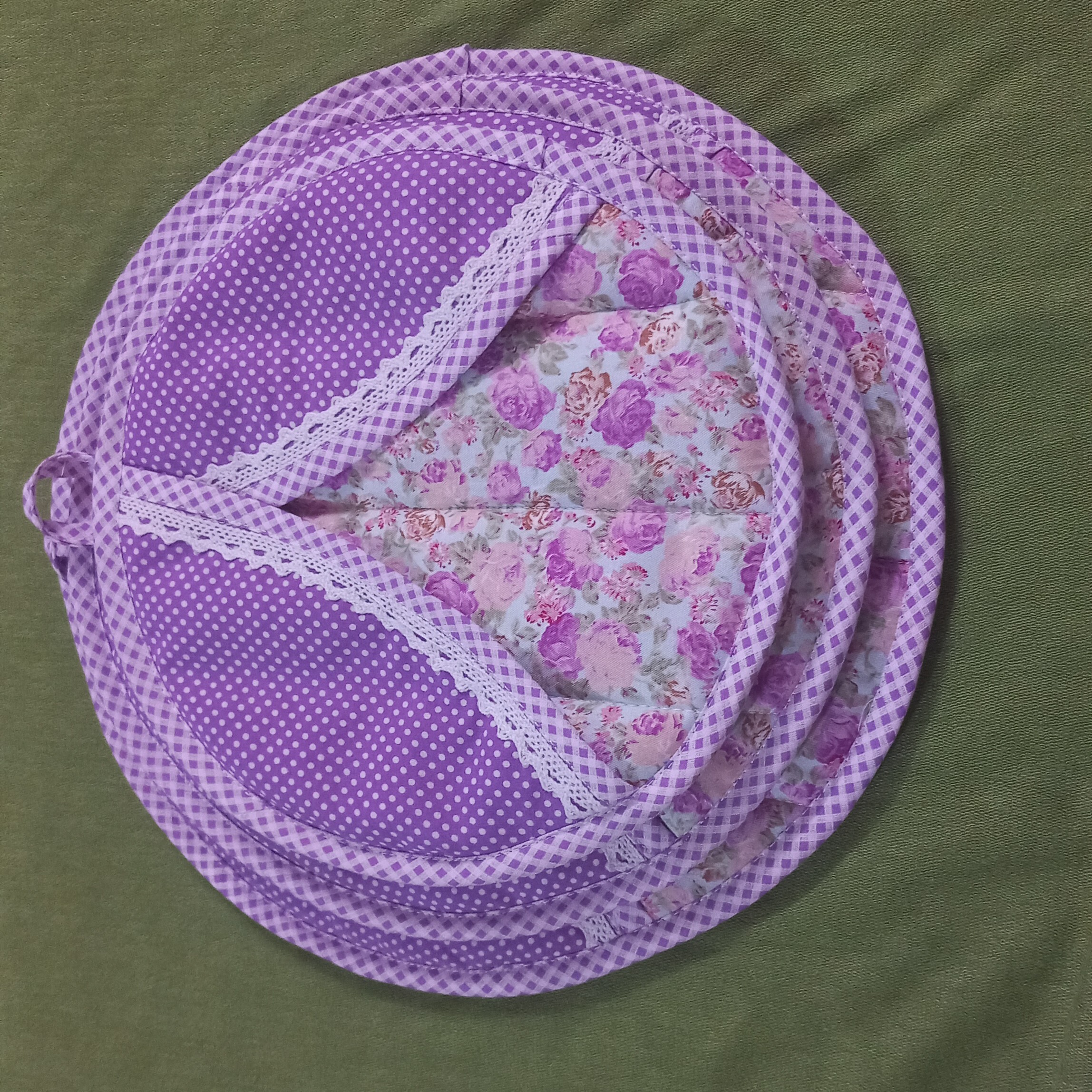 ست دم کنی در سه سایز بسیار زیبا و کاربردی داخل کار از پشم شیشه استفاده شده دور کار از نوار اریب پارچه ای ونوار کنفی دوخته شده در هر رنگ و طرح دلخواه قابل سفارش