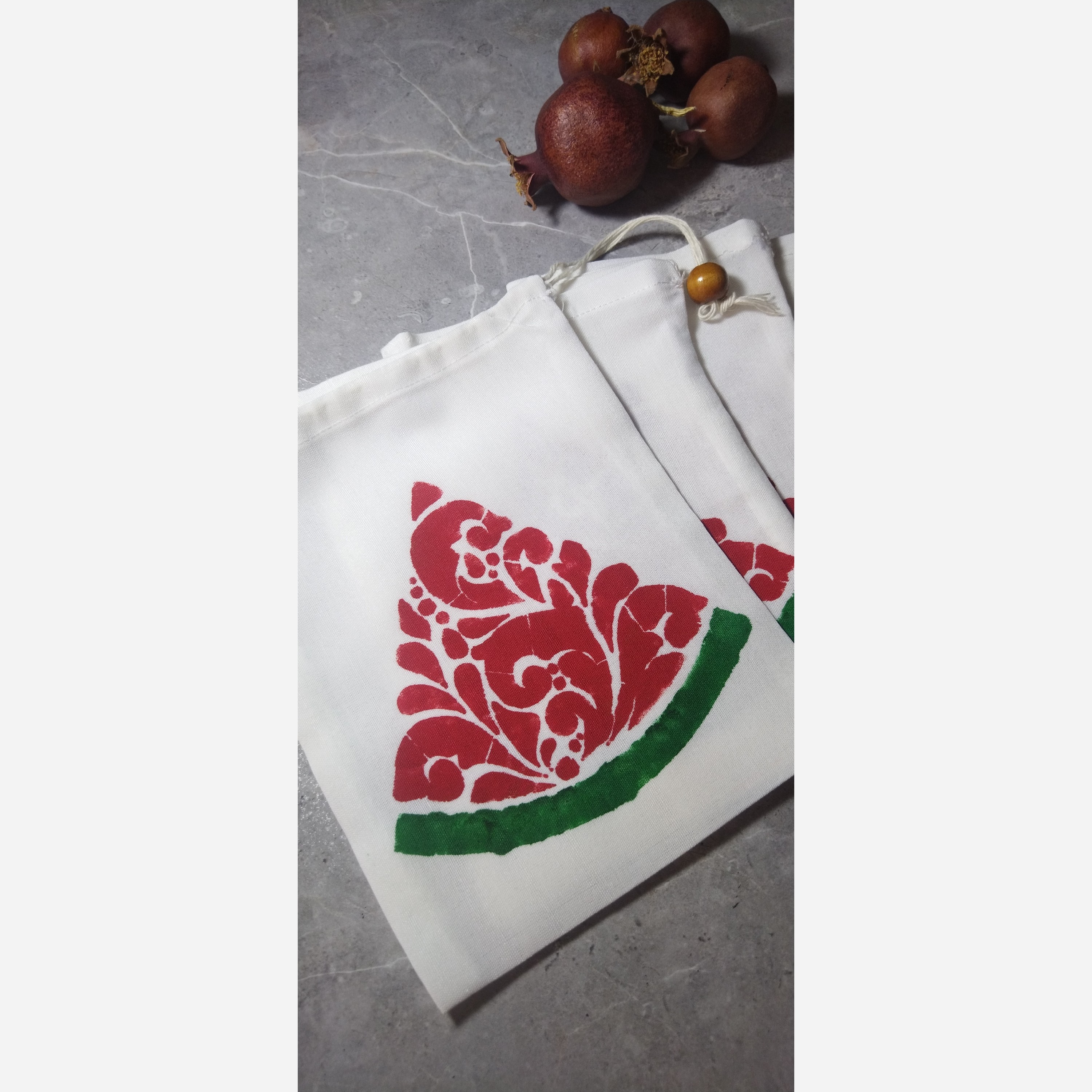 کبسه های جمع شو سایز متوسط در دو سایز و به صورت پکهای 5 عددی ارائه میشود. از جنس متقال خام و بند مکرومه کتان و مهره چوبی و چاپ دستی رنگ پارچه مناسب برای هدیه گیفت و لوازم تزیینی، حتی نگهداری سبزیجات خشک و عطاریها، نگهداری آجیل و خشکبار، کاربردی و زیبا سفارش در سایزهای بزرگتر یا کوچکتر هم پذیرفته میشود. در صورت سفارش تعداد لطفا پیام دهید🌹