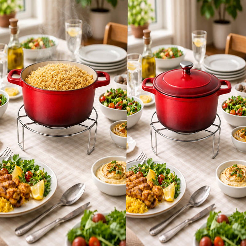 برای سرو و کشیدن غذا از قابلمه به بشقابها ممکن است وقتی قابلمهی داغ را روی سفره یا فرش میگذارید سطح داغ آن به سفره یا فرش بچسبد و باعث سوختگی آن شود. امروزه انواع زیرقابلمه ای در طرحها و مدلهای مختلف تولید شده که به هیچ وجه به کف قابلمه نمیچسبد و به عنوان محافظ سفره میتوان از آنها استفاده کرد. مدل های زیر قابلمه ای : امروزه انواع زیر قابلمهای در طرحها و مدلهای مختلف تولید شده است که میتوان از آنها برای مهمانیهای جداگانه استفاده کرد. مدل پروانهای ، مدل برگ ، مدل گل ، مدل چرم مدل پایه دار و ... از انواع مدلهای این محصول هستند . گارانتی : اصالت و سلامت فیزیکی کالا رنگ : استیل, مشکی, نقره ای وزن : 191 گرم شکل : دایره ابعاد : 19x3x8 سانتی متر