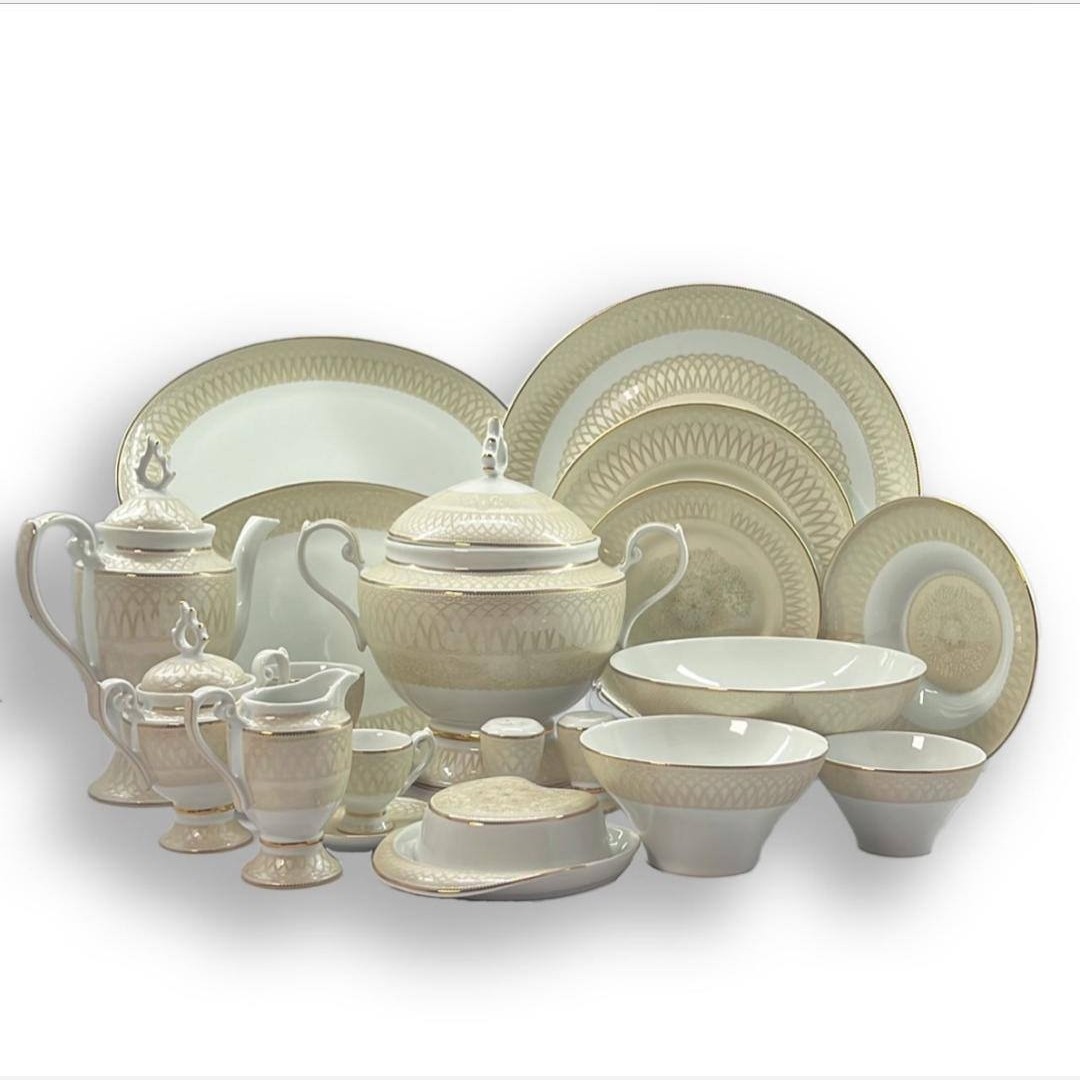 🌟جدیدترین قالب چینی لورین در چیدمان سرویس 29 پارچه 6 نفره طرح انحصاری روجا طلایی درجه A🌟 زیبا و منحصر به فرد برای همکاران گرامی با قیمت عمده و به صورت عمده موجودست چیدمان شامل 6 عدد پیش دستی 6 عدد بشقاب پلوخوری 6 عدد پیاله 2 عدد نمکدان 1 عدد سس خوری 1 عدد کاسه سالاد 6 بشقاب خورشت خوری 1 دیس پلو خوری