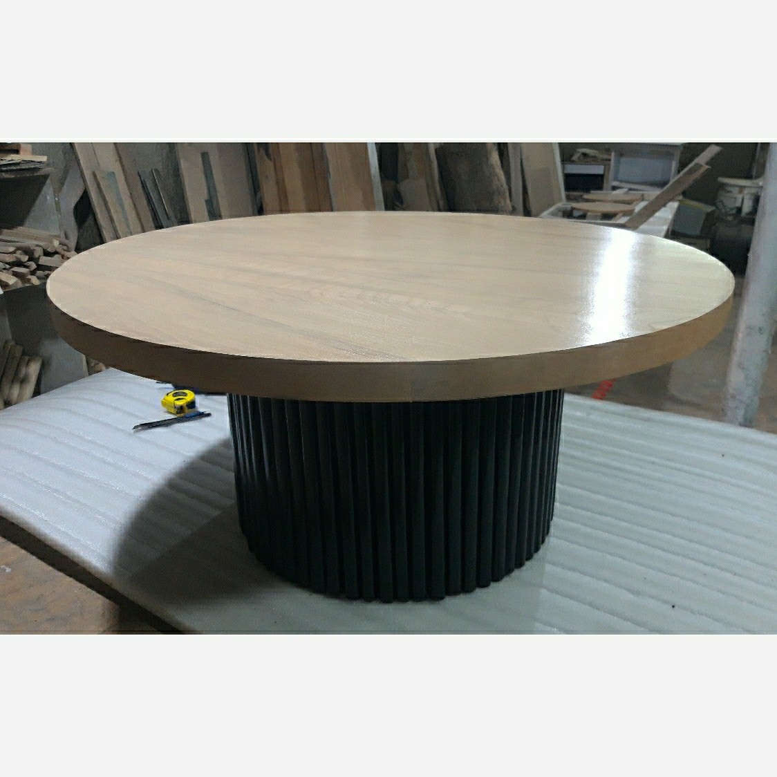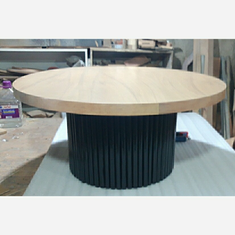 صفحه میز قطر 80 ارتفاع 40 سانت. پایه مشکی صفحه ام دی اف روکش طبیعی چوب راش