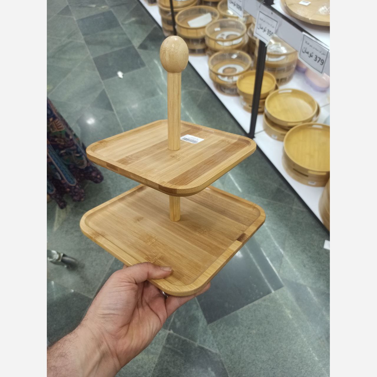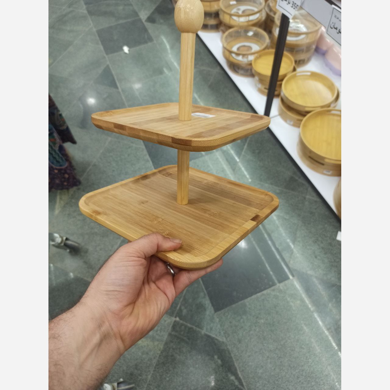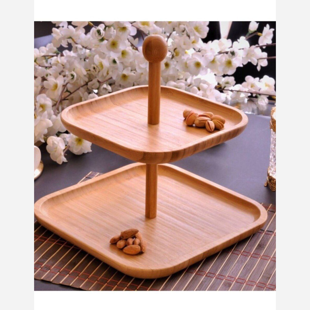 شیرینی خوری دو طبقه بامبو وارداتی استند 2 طبقه چوبی مبلمونسرا مدل 275662