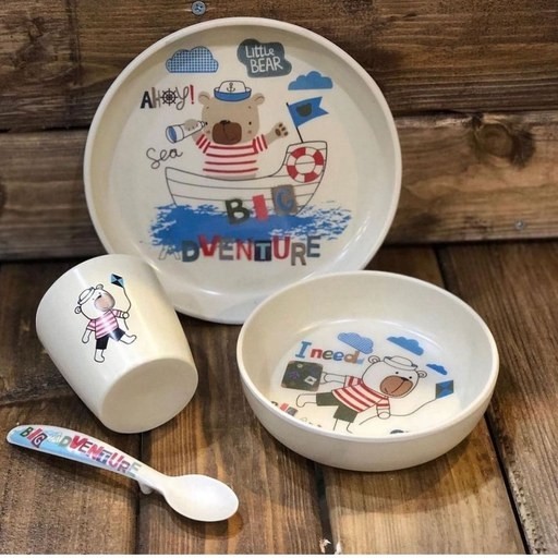 ظرف غذا خوری 5 تیکه بامبو طرح خرس قایق سوار مبلمونسرا مدل 288833