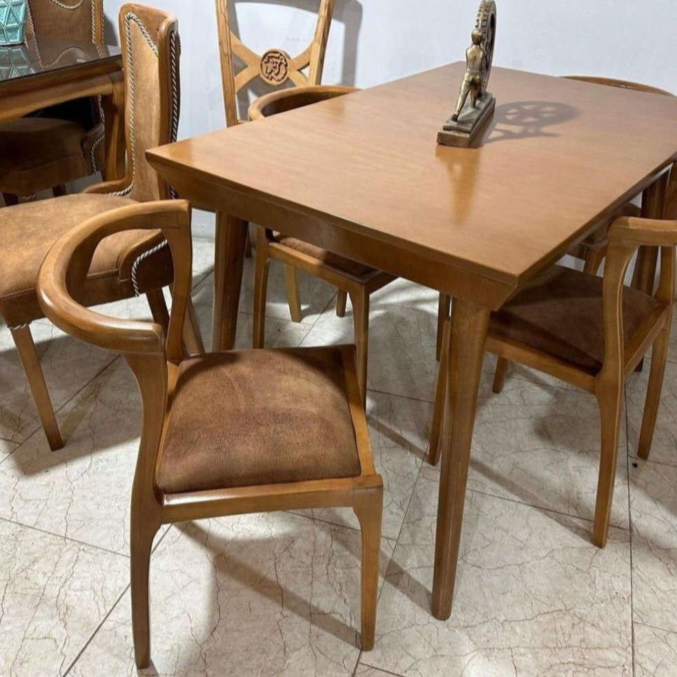 جنس صفحه میز ام دی اف، جنس پایه های میز و صندلی ها چوب روسی