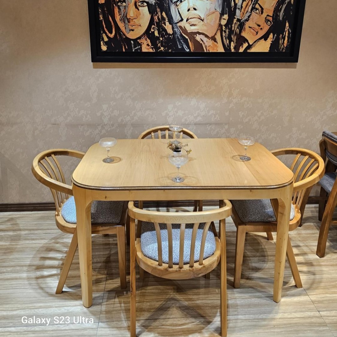 جنس صفحه میز ام دی اف، جنس پایه های میز و صندلی ها چوب روسی