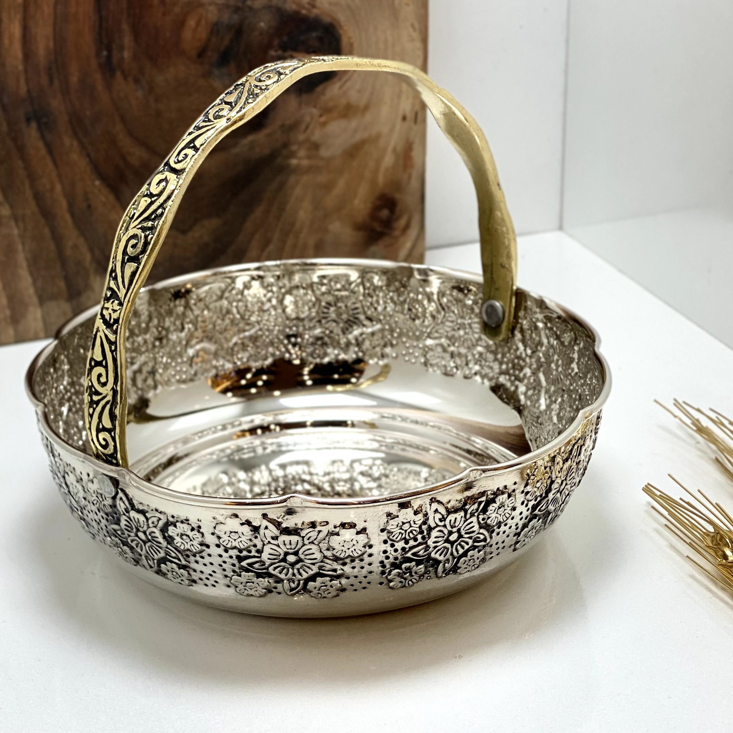 سبد مسی دسته برنجی آبکاری شده با کروم مبلمونسرا مدل 277450