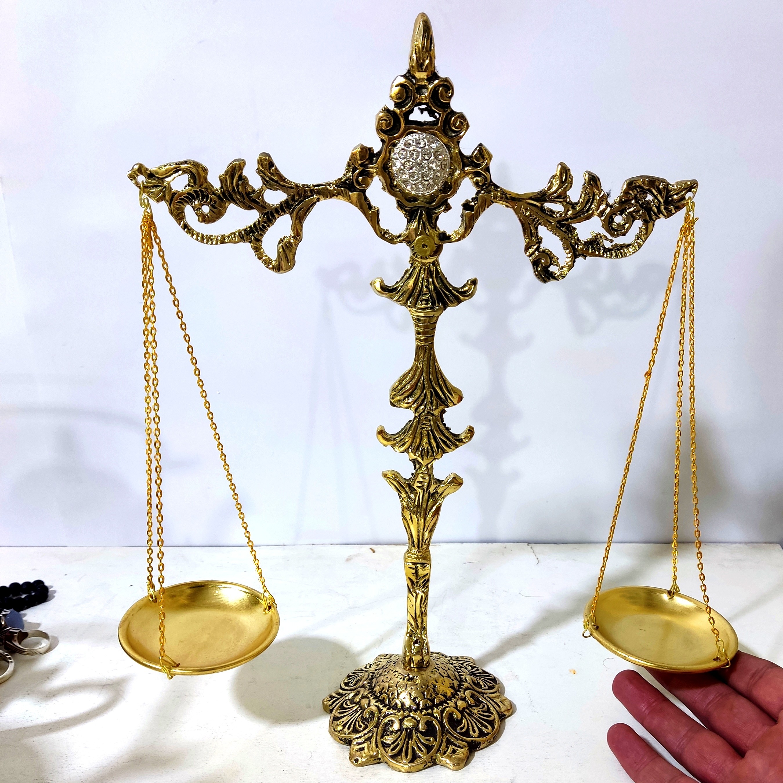 ترازو برنجی 32سانتی بزرگ بسیار زیبا وباکیفیت طرح عدالت مبلمونسرا مدل 254035