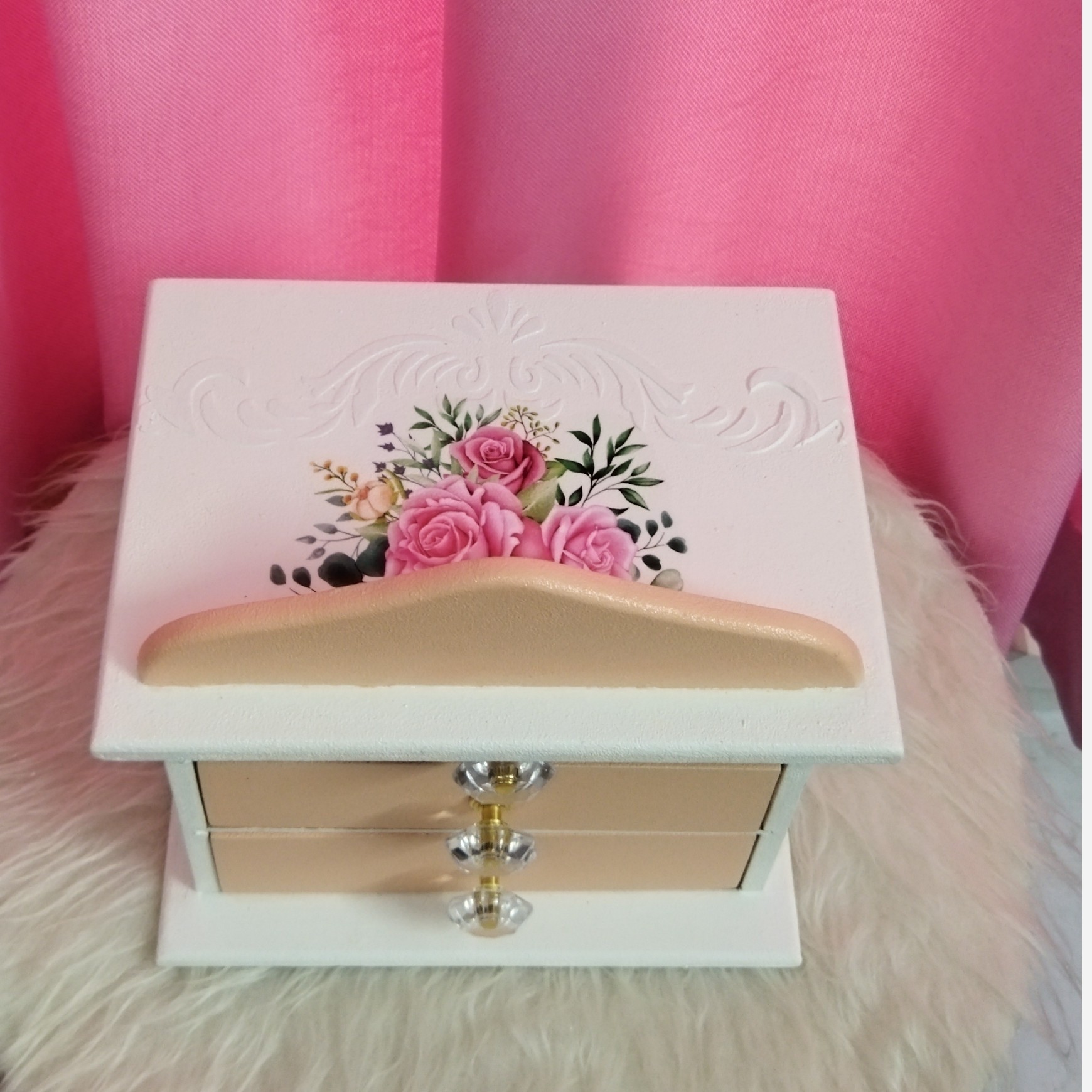جعبه سه کشو چوبی تاجدار با دستگیره کریستالی شیکوپاژ مبلمونسرا مدل 231512