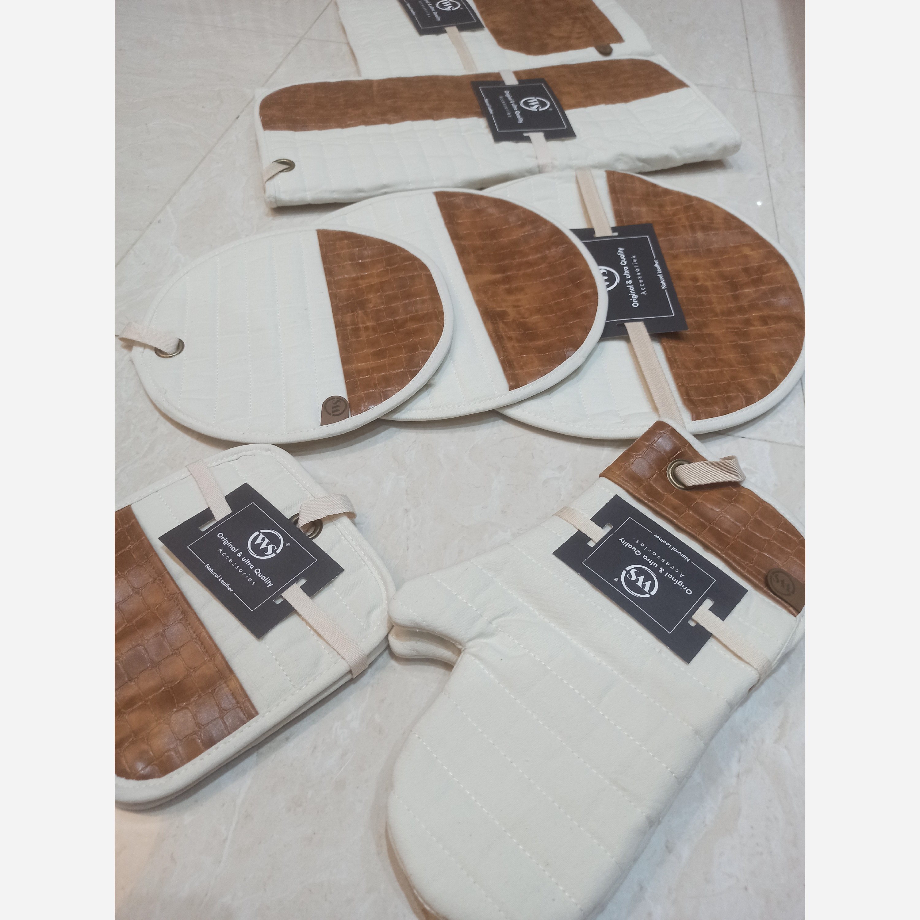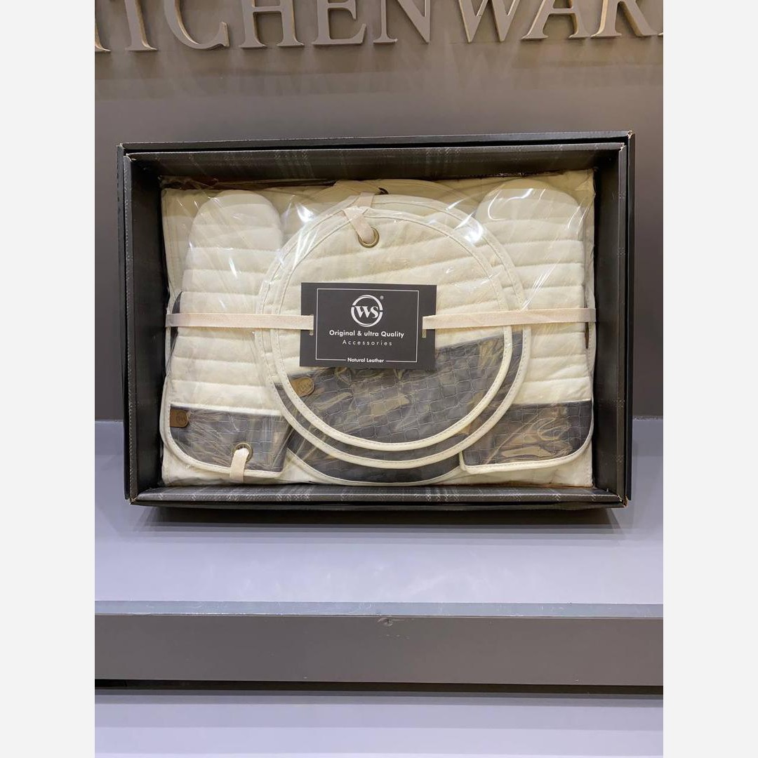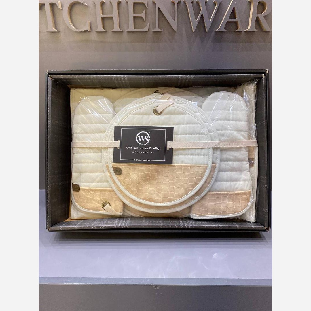 ست دمکنی آشپزی دبلیو اس نمگیر مدرن از برند WS مدل نچرال شامل پیشبند و دستکش آشپزی نمگیر دمکنی و دستگیره مبلمونسرا مدل 301763