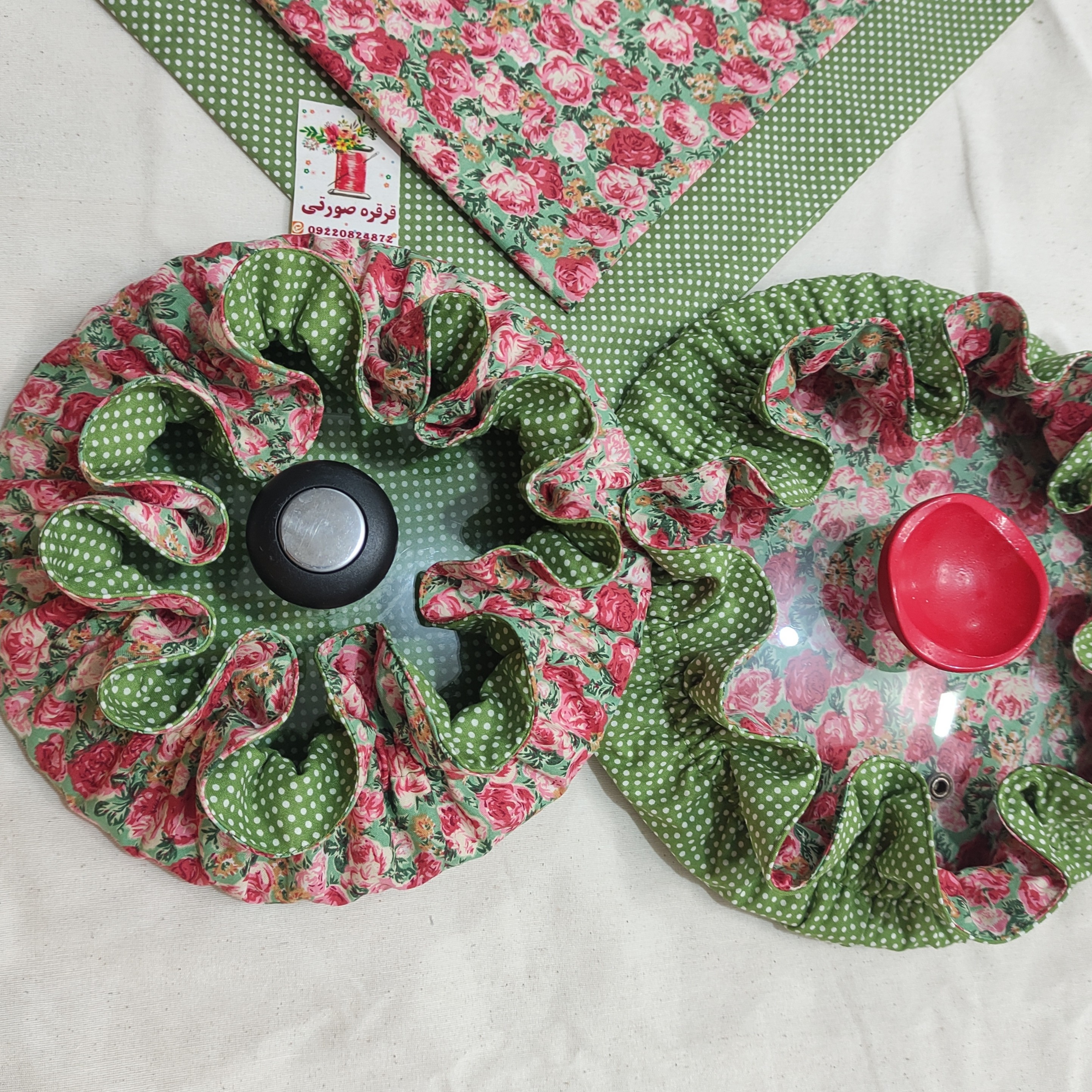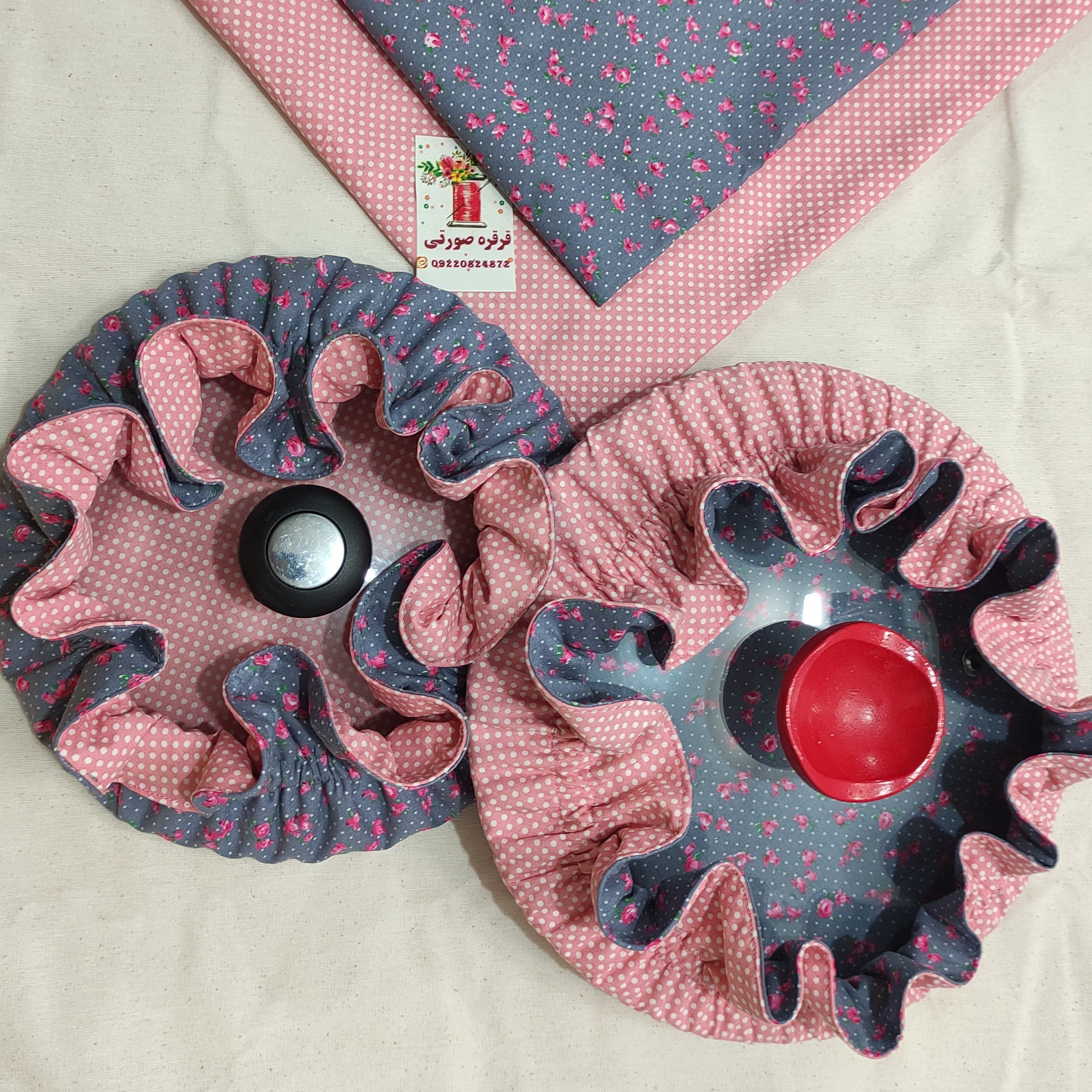 دمکنی فری سایز دو رو دوخته شده با پارچه کتان نخ سه لایه لایه میانی متقال ضخیم قابل استفاده تا درقابلمه با قطر30 قابل استفاده برای در قابلمه تا 3سایز کوچیکتر