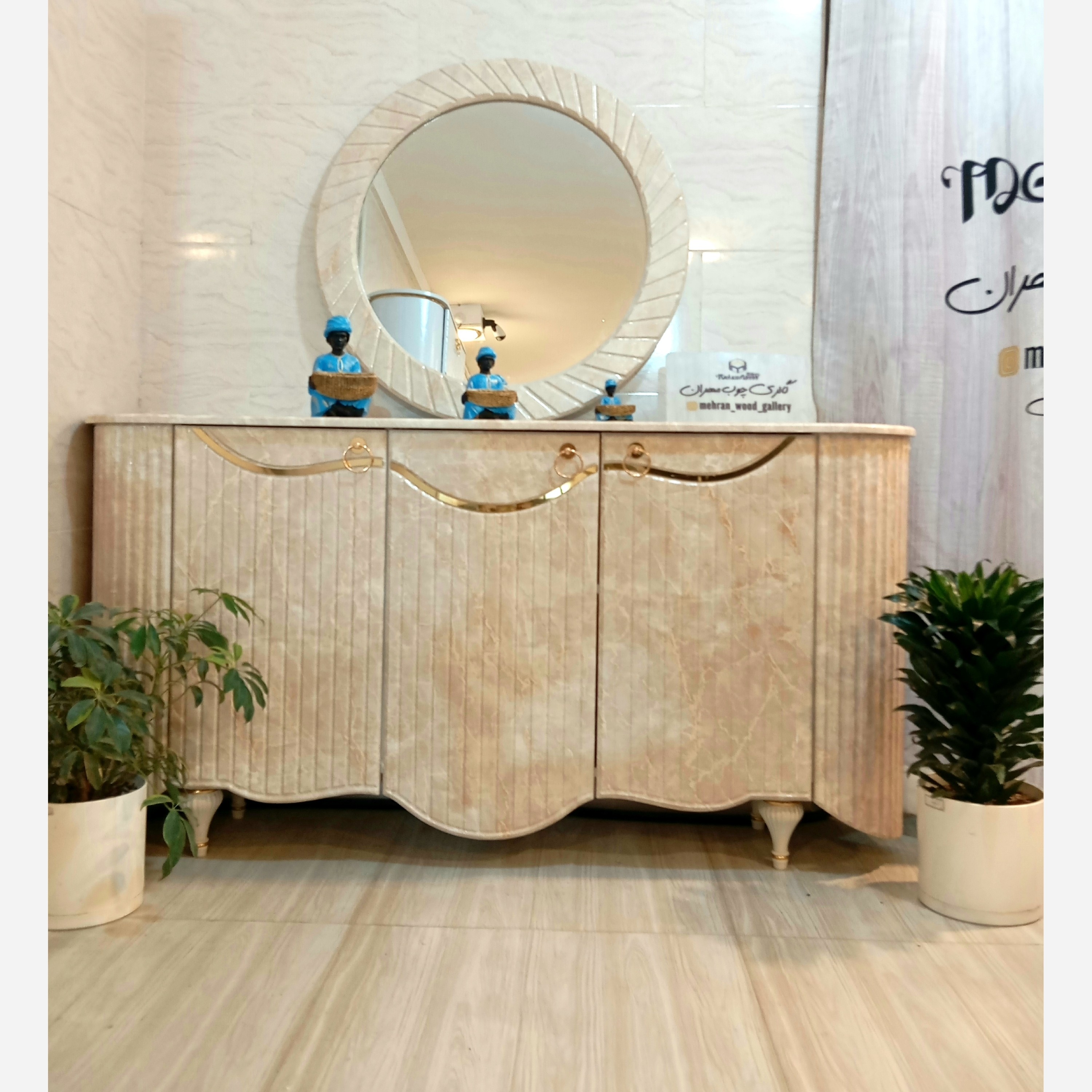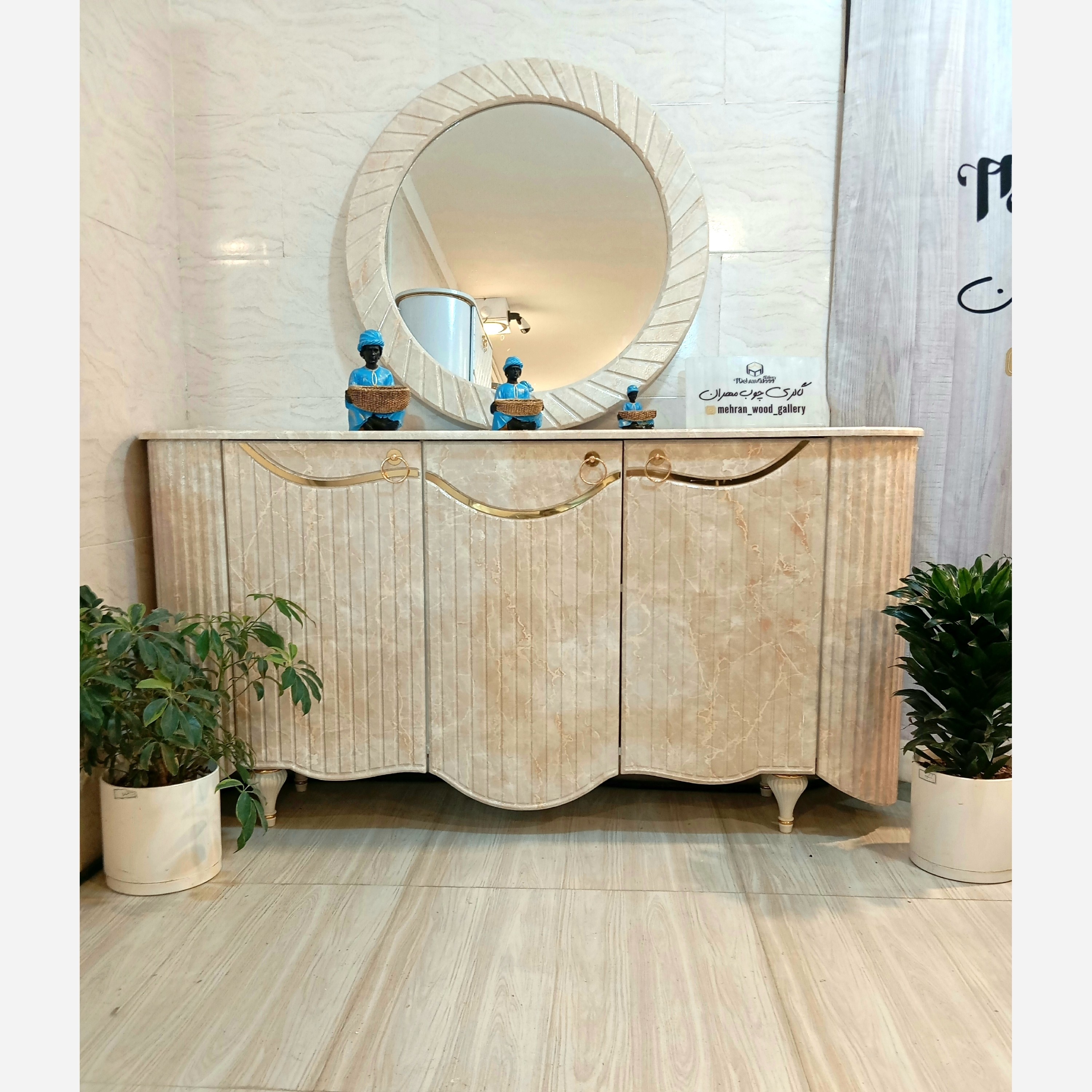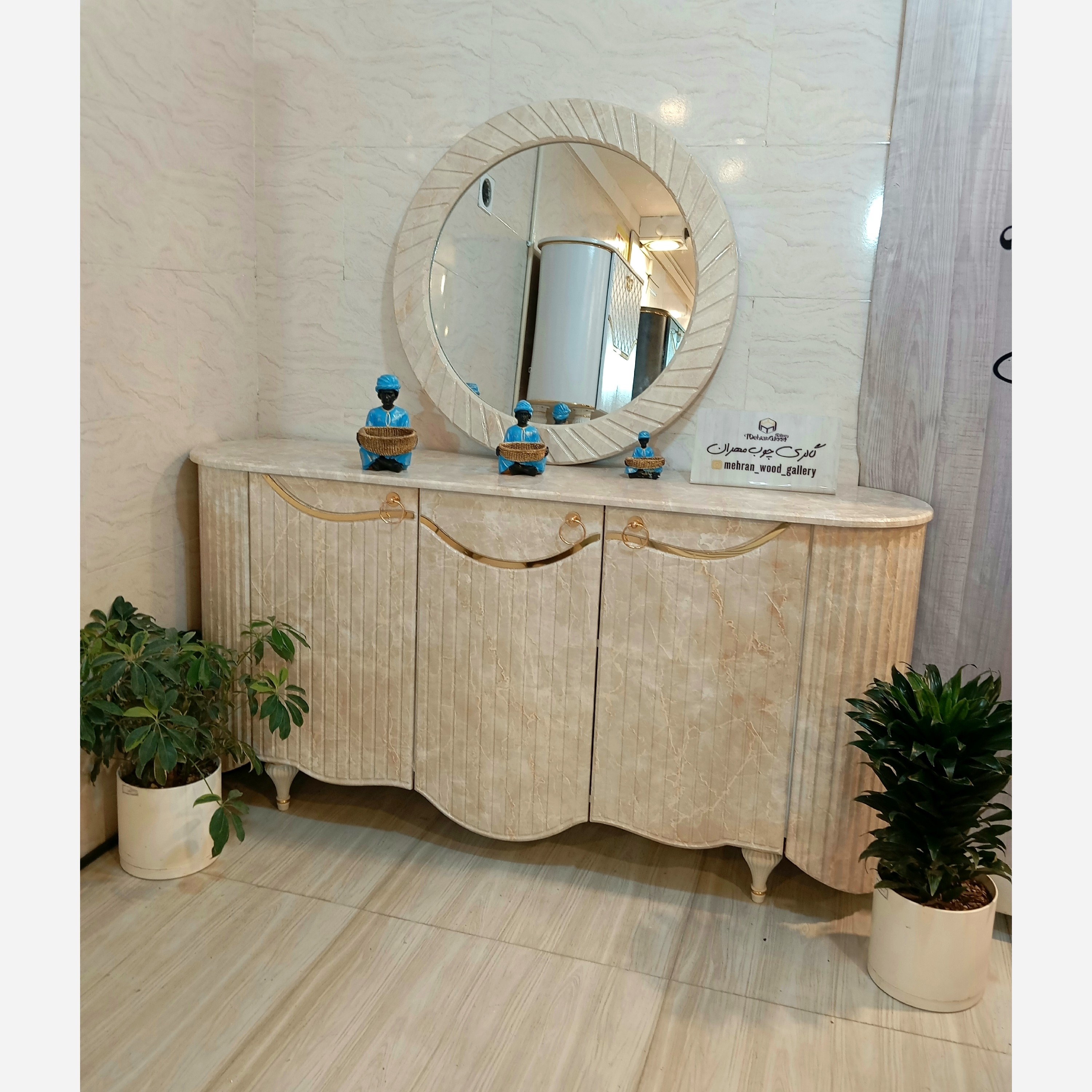 آینه 80 سانت و کنسول 160سانت مدل هلالی رنگ کرم سنگی هزینه ارسال با مشتری تمام MDF با روکش وکیوم FRP شرکتی مبلمونسرا مدل 263100