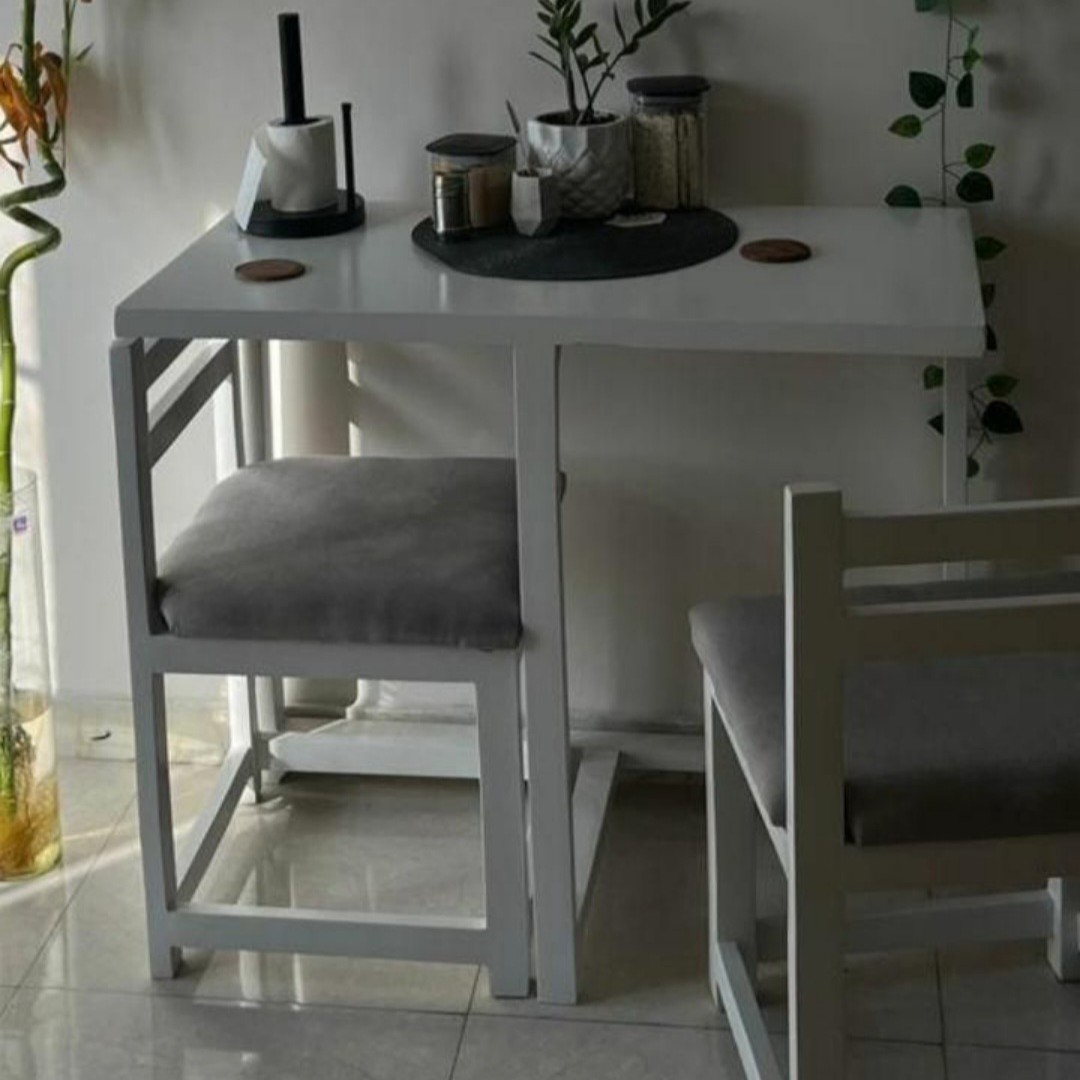 جنس صفحه میز ام دی اف، جنس پایه های میز و صندلی ها چوب روسی