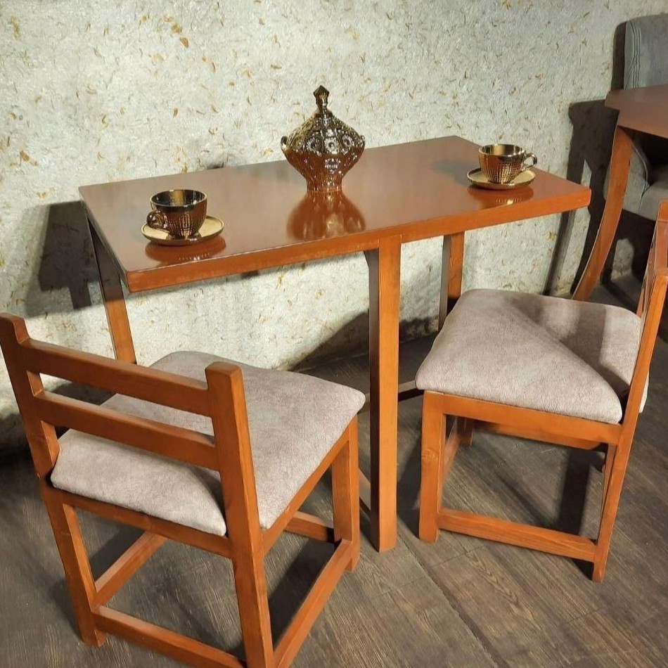 جنس صفحه میز ام دی اف، جنس پایه های میز و صندلی ها چوب روسی
