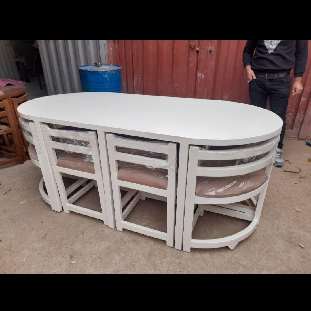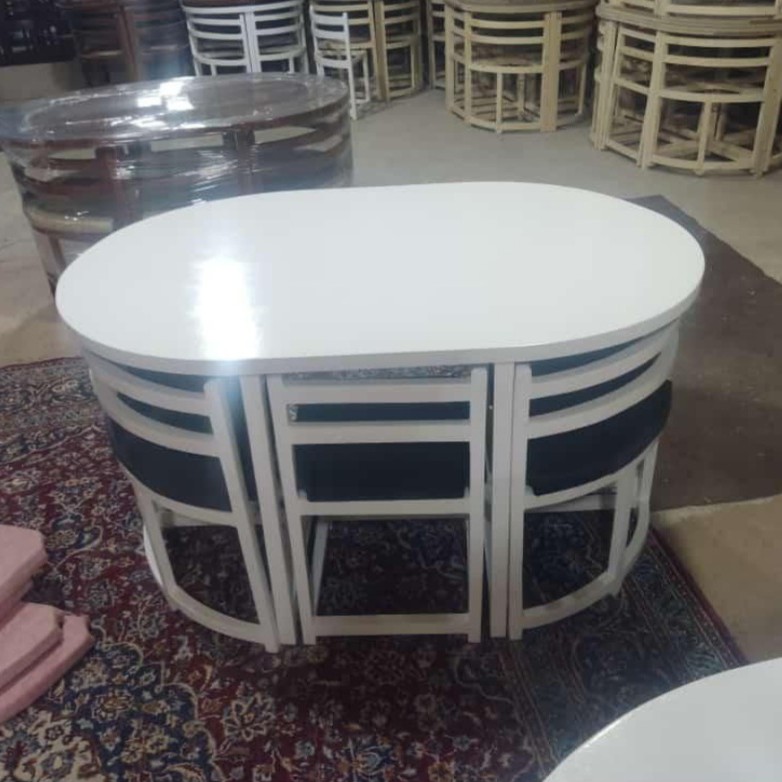 جنس صفحه میز ام دی اف، جنس پایه های میز و صندلی ها چوب روسی