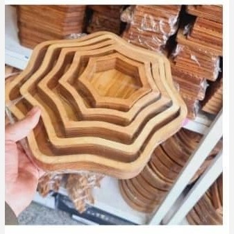 *شارژ مجدد سینی چوبی5تکه مربع👆* جنس چوب باکیفیت وضدآب🥰 شیک و بروز💥 مناسب برای سرو چای،میوه،شیرینی ،تنقلات و انواع خوراکی ها〽️ با بسته بندی محکم👌🏻 شیک پذیرایی کنید😉 💰 *قیمت فوق العاده محصولات دیگر مارا در غرفه ببینید