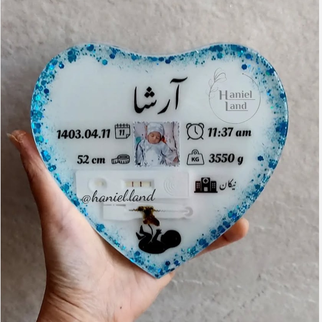 استند عکس رزینی قلبی با عکس و طرح دلخواه، استند نوزاد مبلمونسرا مدل 259628