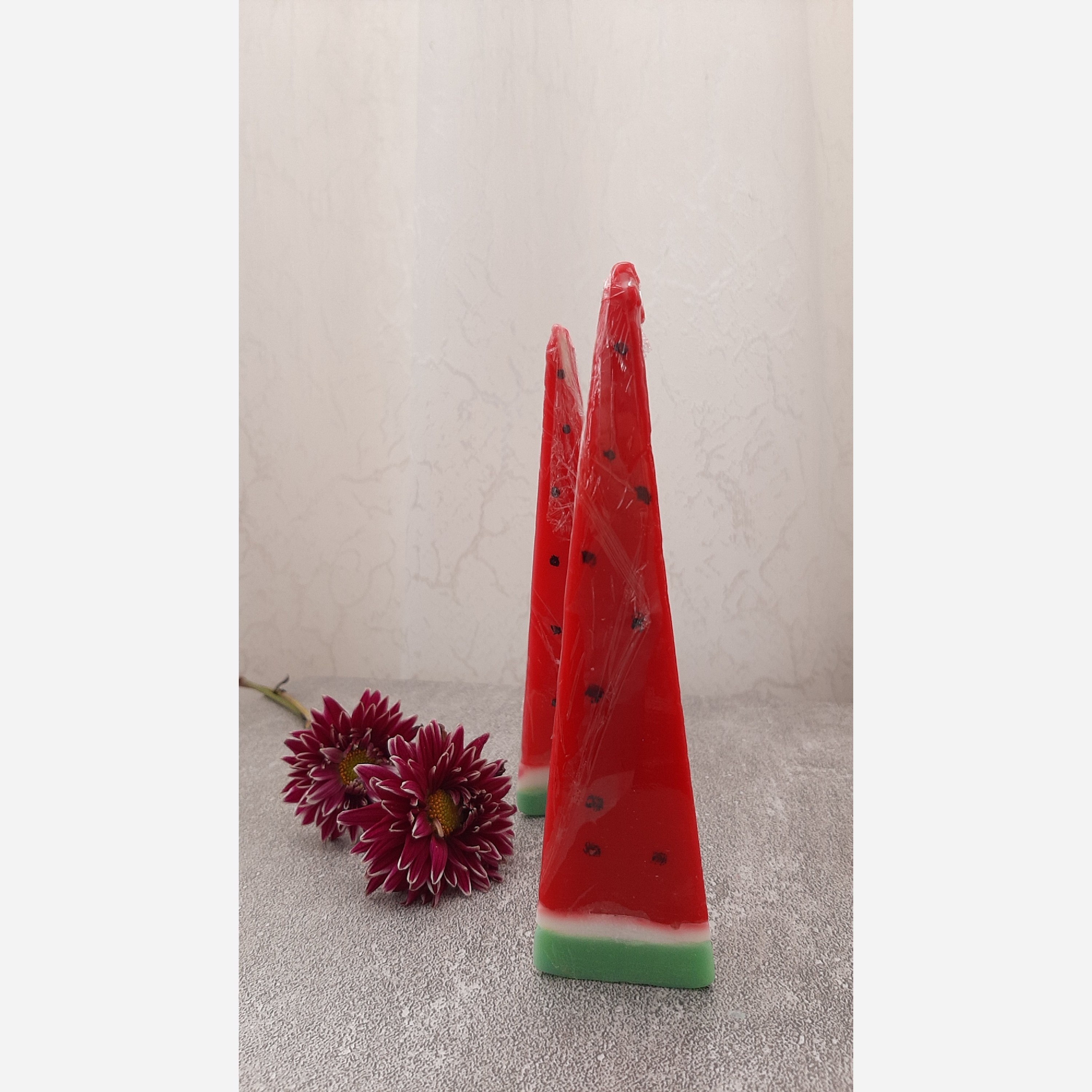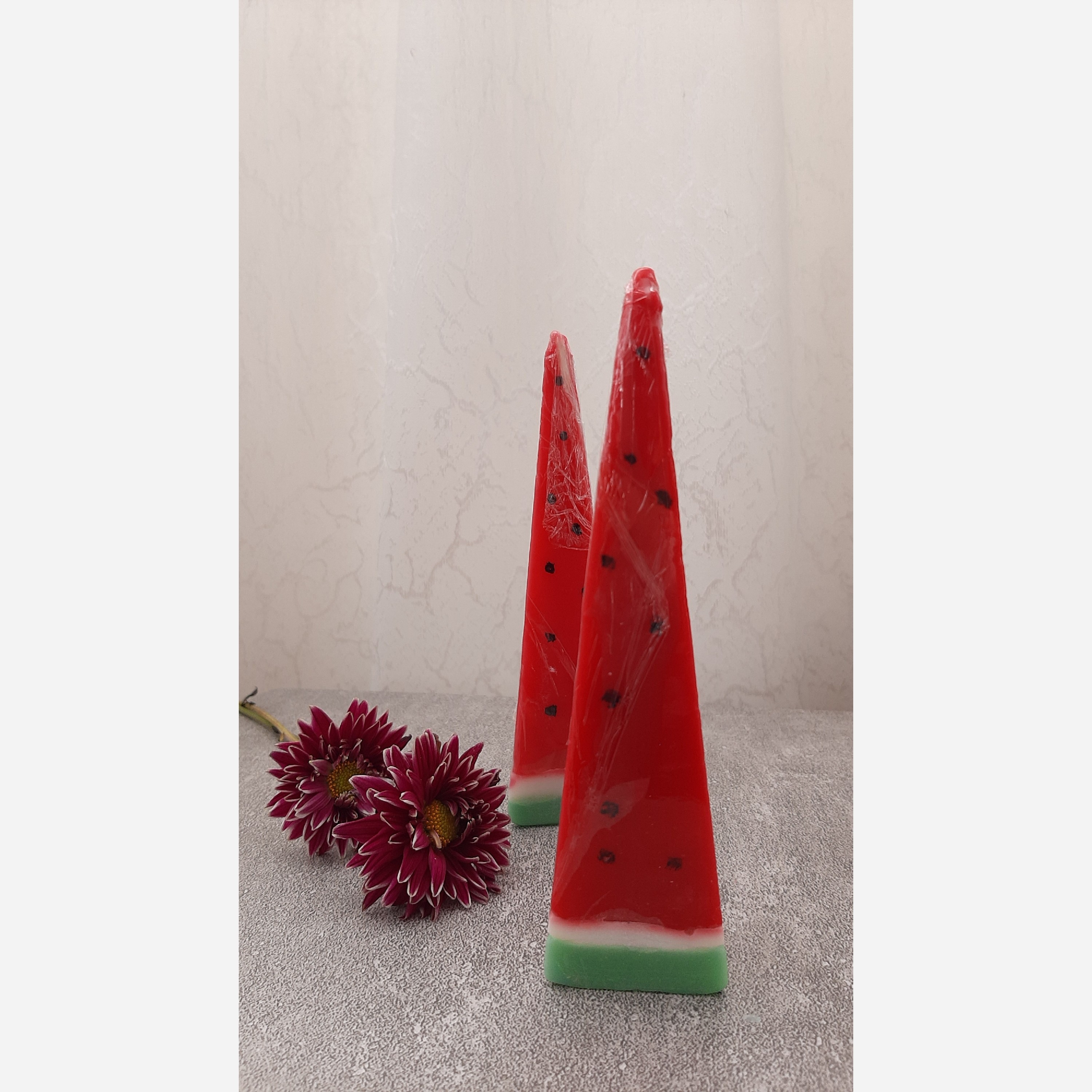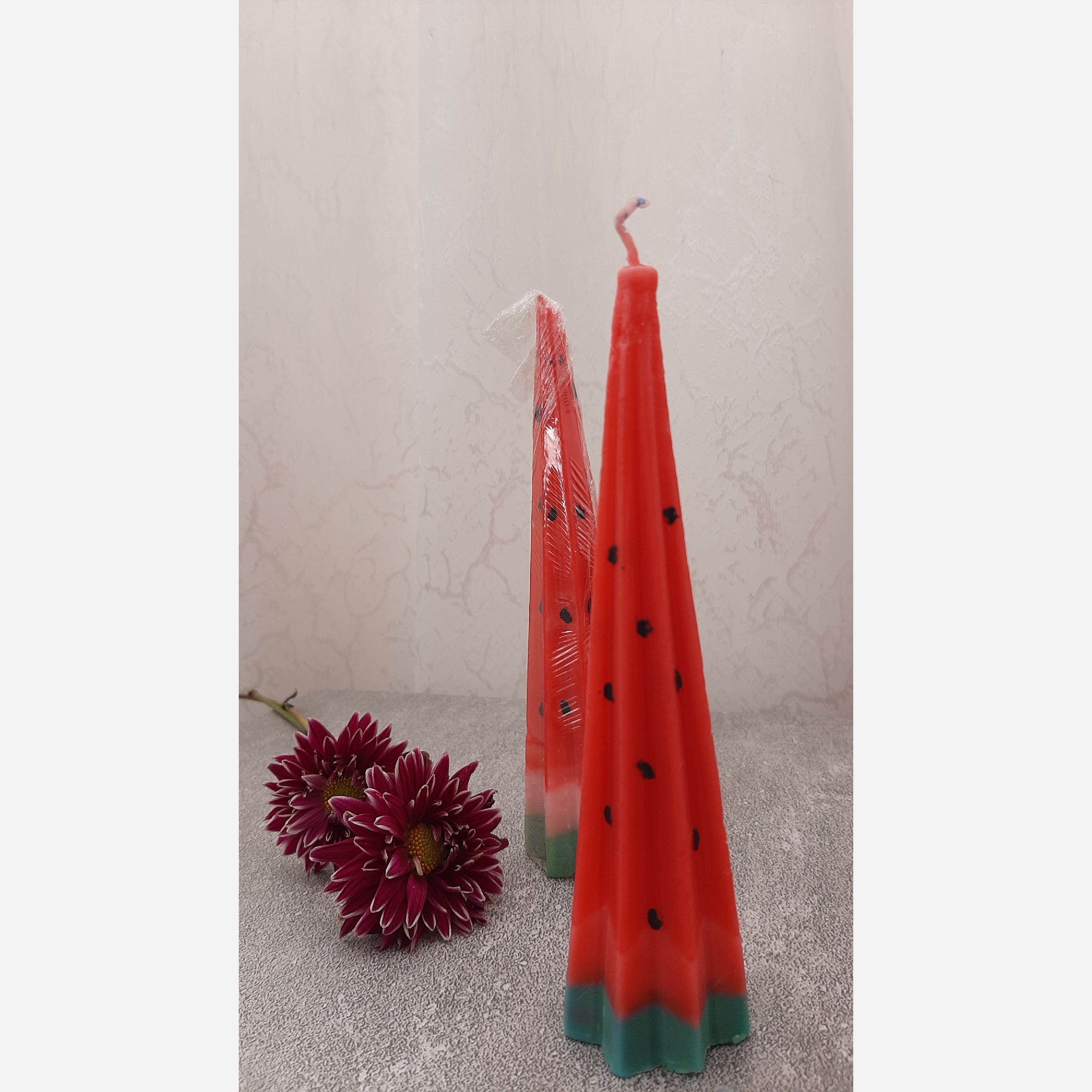 شمع های یلدایی هرمی با ارتفاع 15 سانت زینت بخش محافل یلدایی شما زیباترین هندوانه ی یلدا🥰🍉