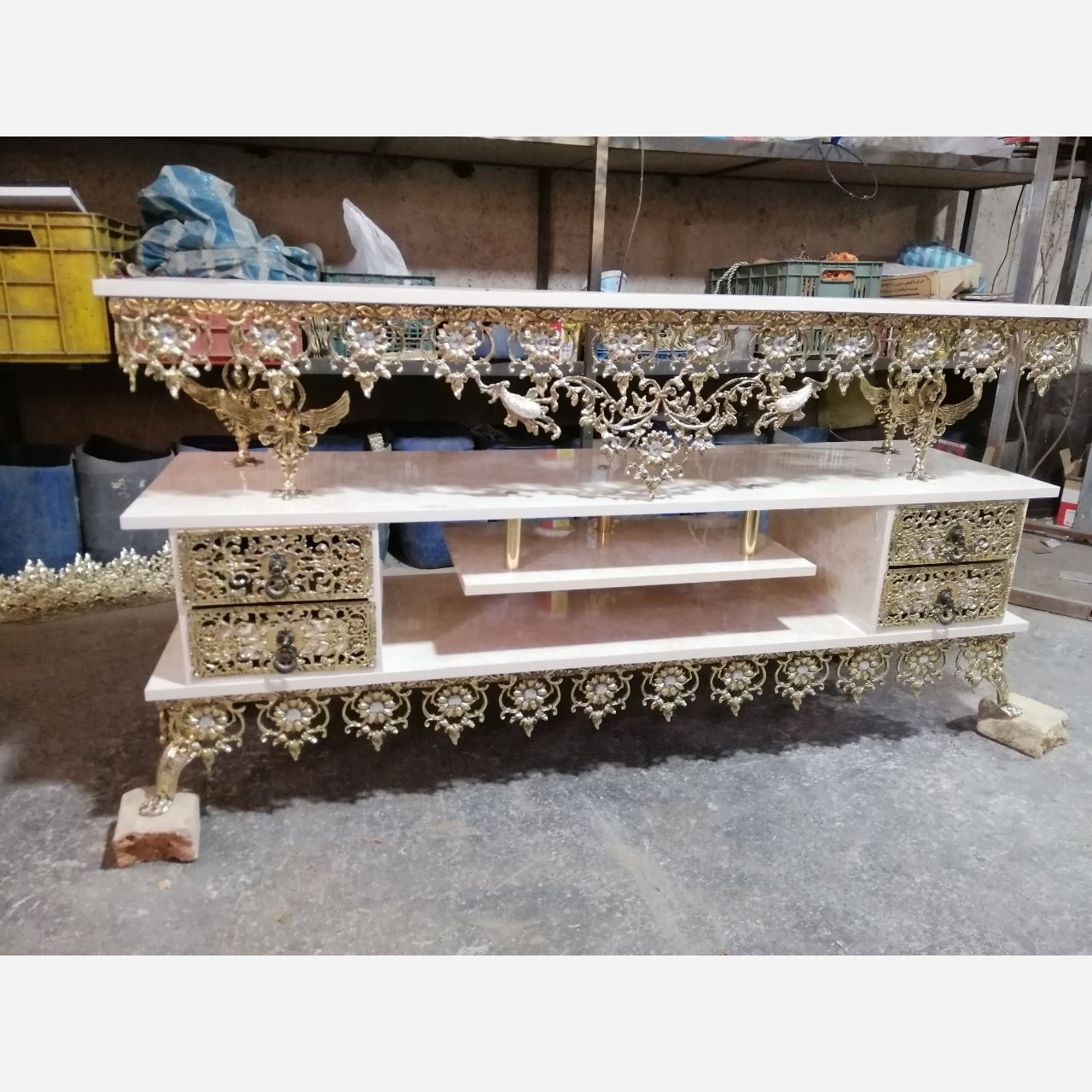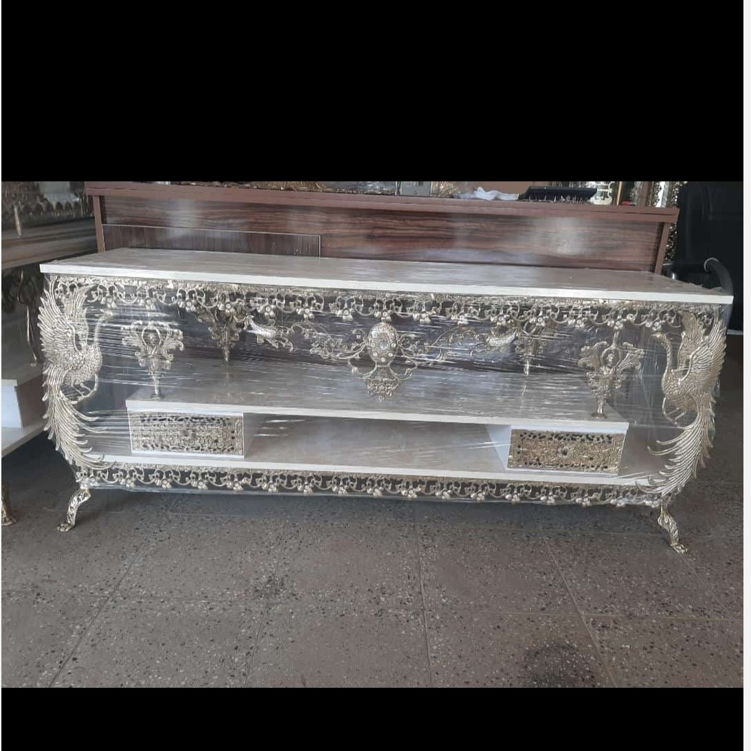 کد 5058 میز تلویزیون برنزی اصل پر کار ابعاد و مدل متنوع مبلمونسرا مدل 224941