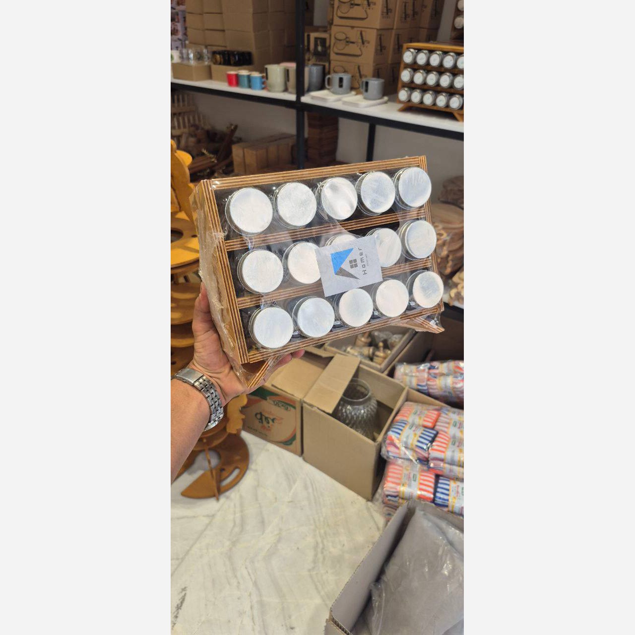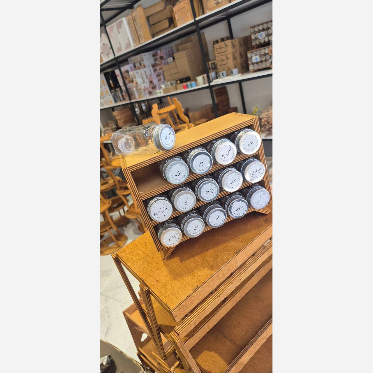 استند مکارتی پایه دار 12تایی بهمراه درپوش سیلیکونی استند چوبی ادویه پاسماوری مکارتی 12تایی استنددار استند ادویه پایه دار مبلمونسرا مدل 293280