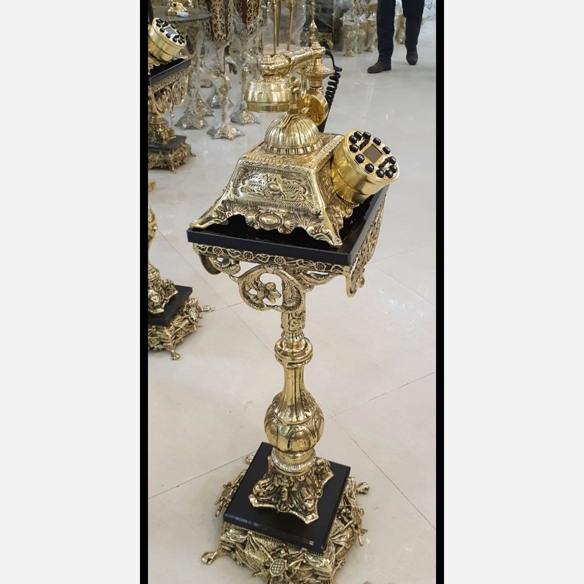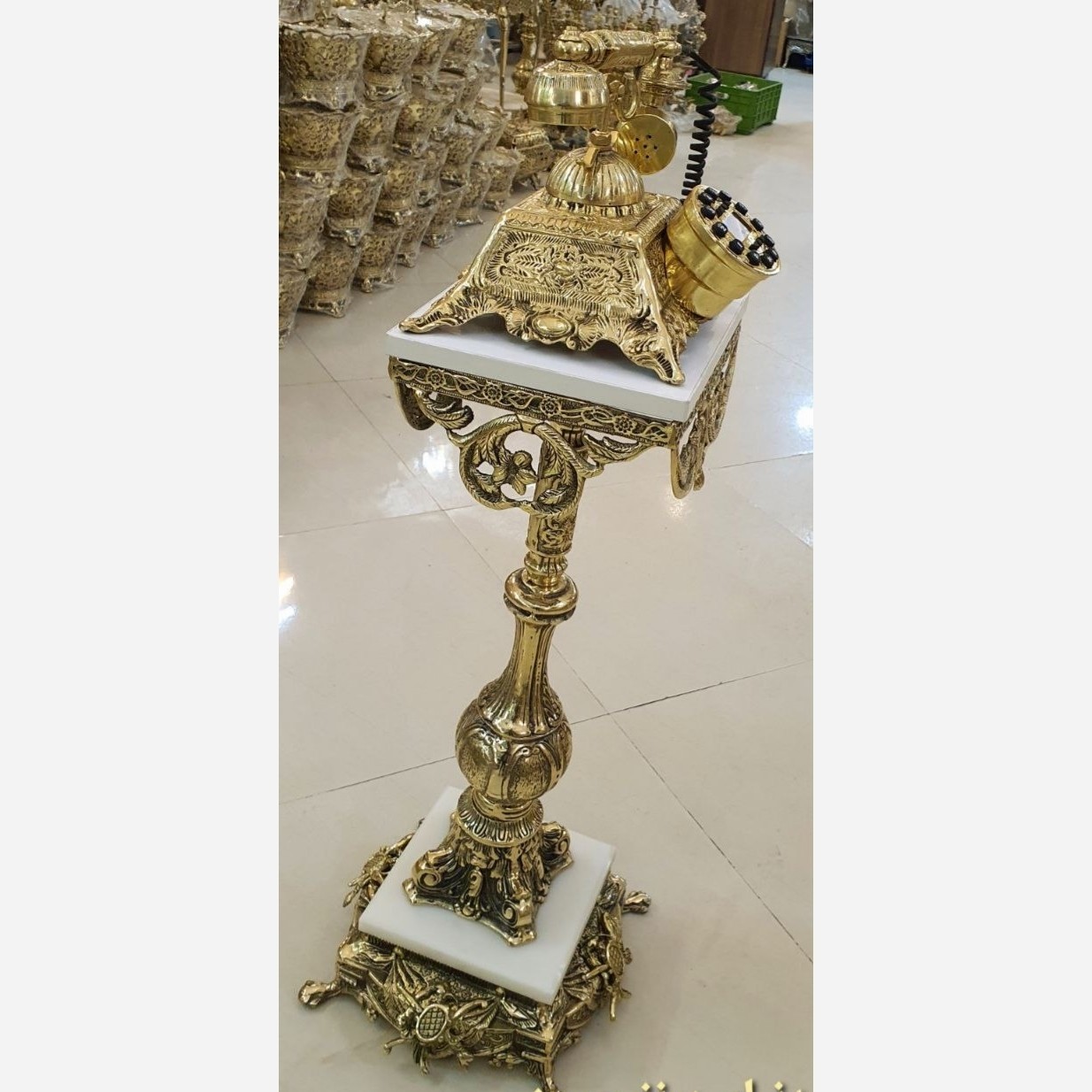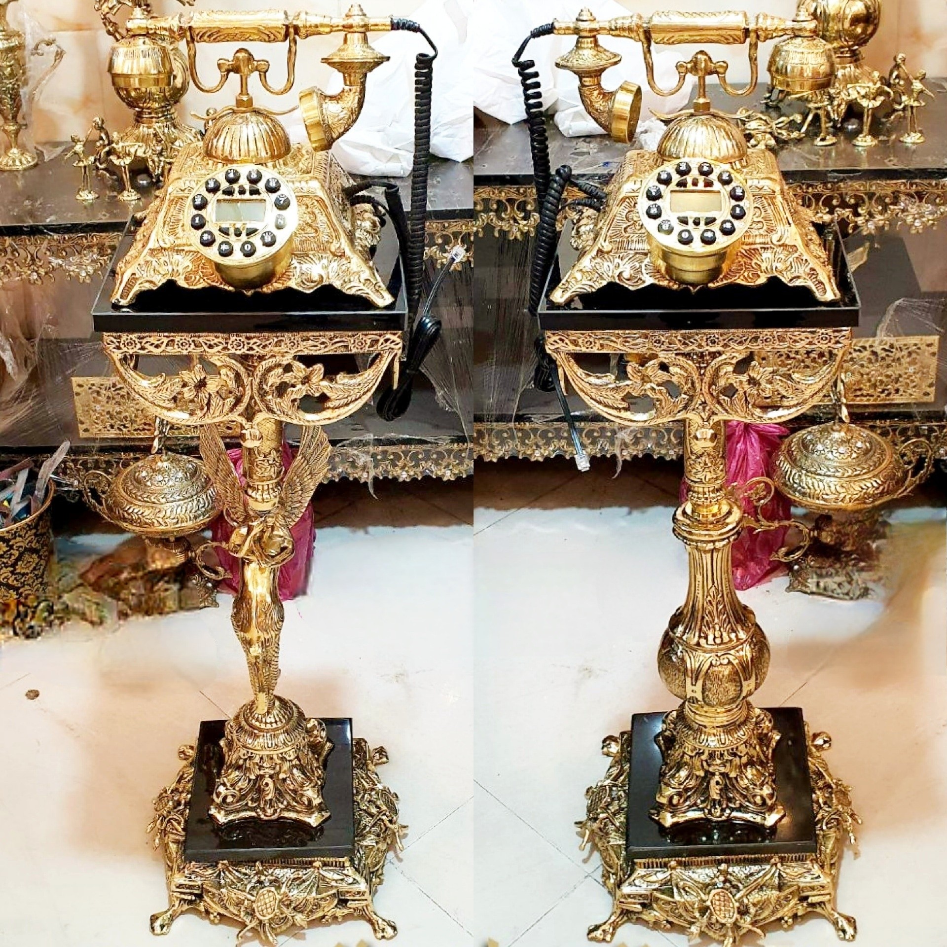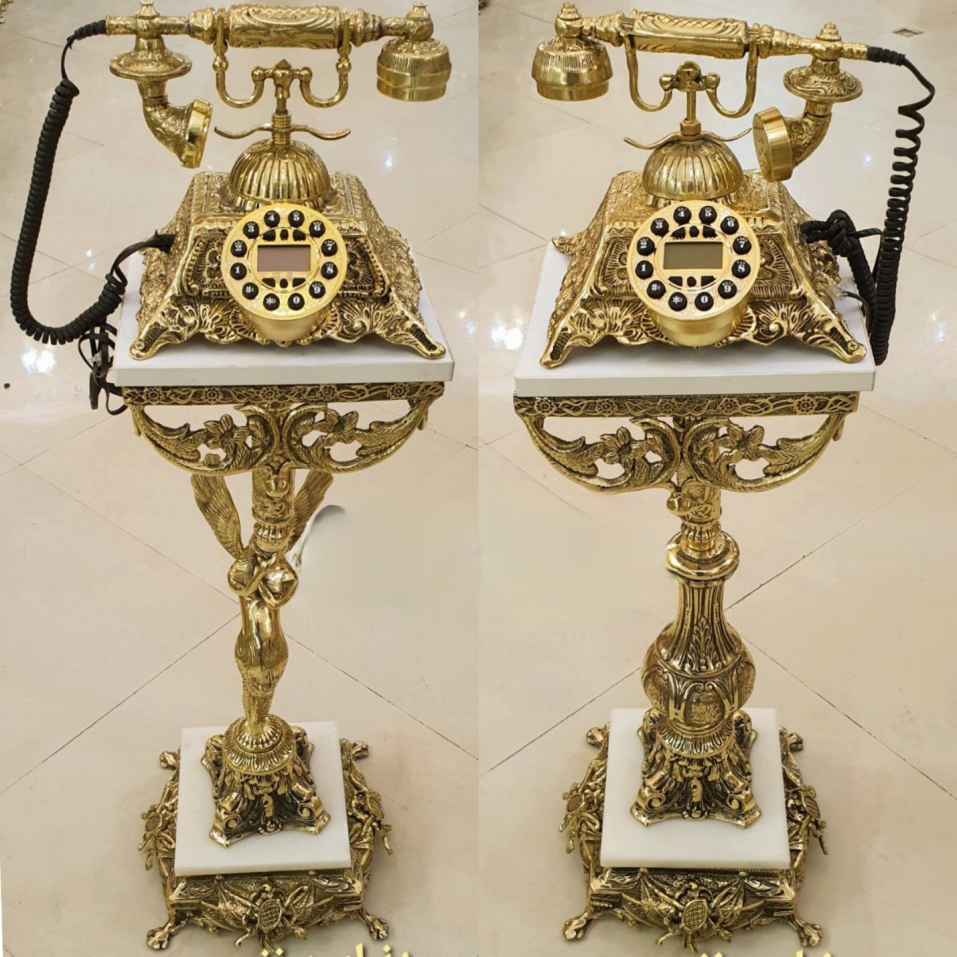 تلفن پایه دار برنز قالب اصلی فرشته سوراهی تلفن ایستاده میز تلفن برنزی مبلمونسرا مدل 223884