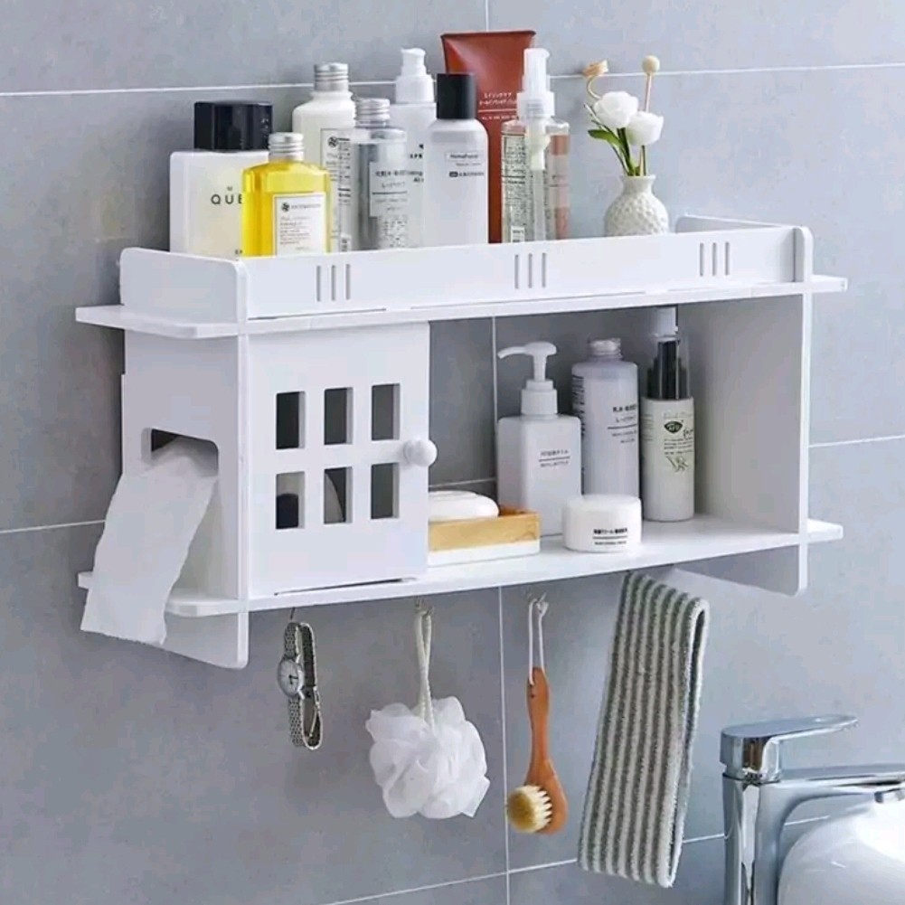 شلف حمام آویز دار جدید بزرگترین سایز دستگیره دار با ورقهای محکم ضد آب مبلمونسرا مدل 258892