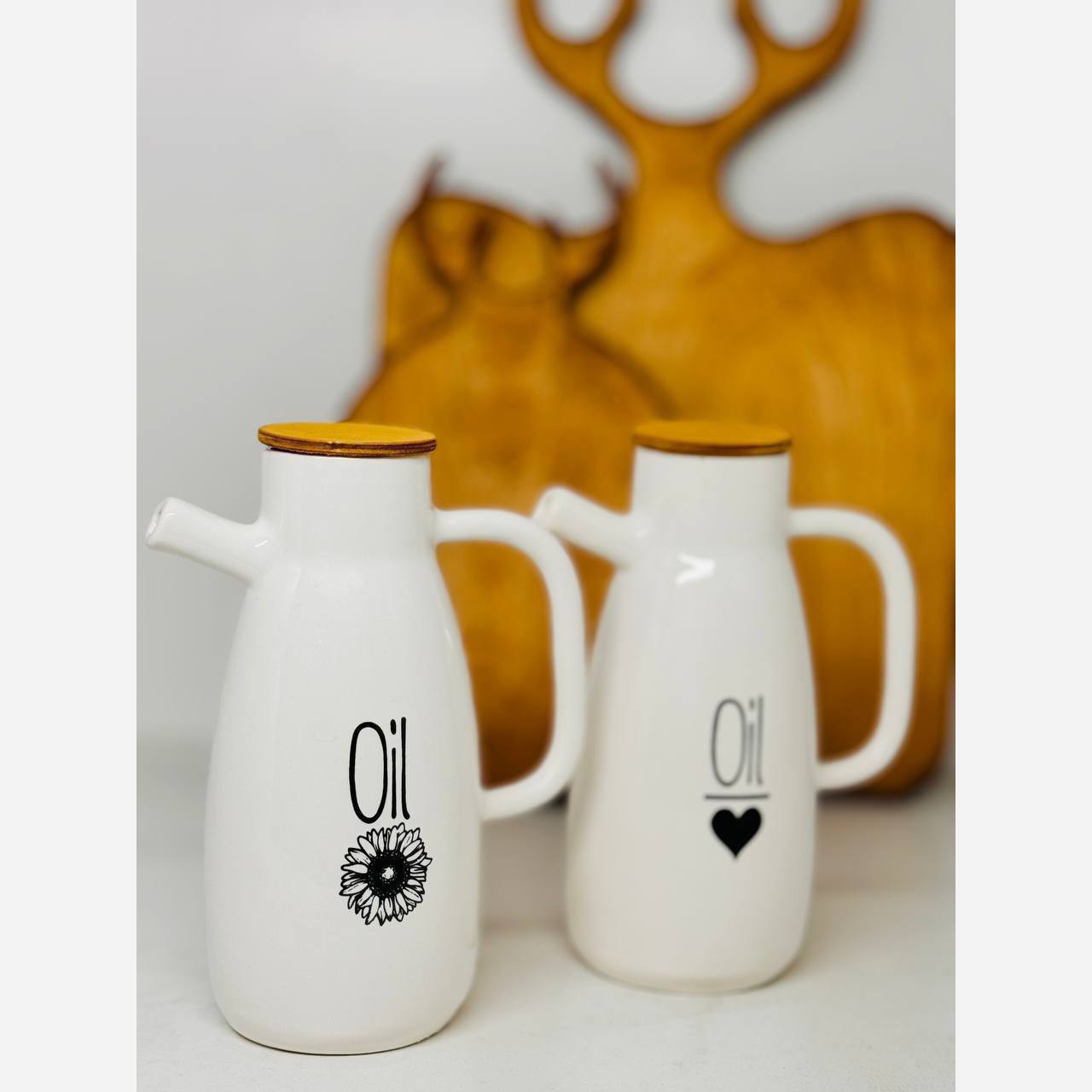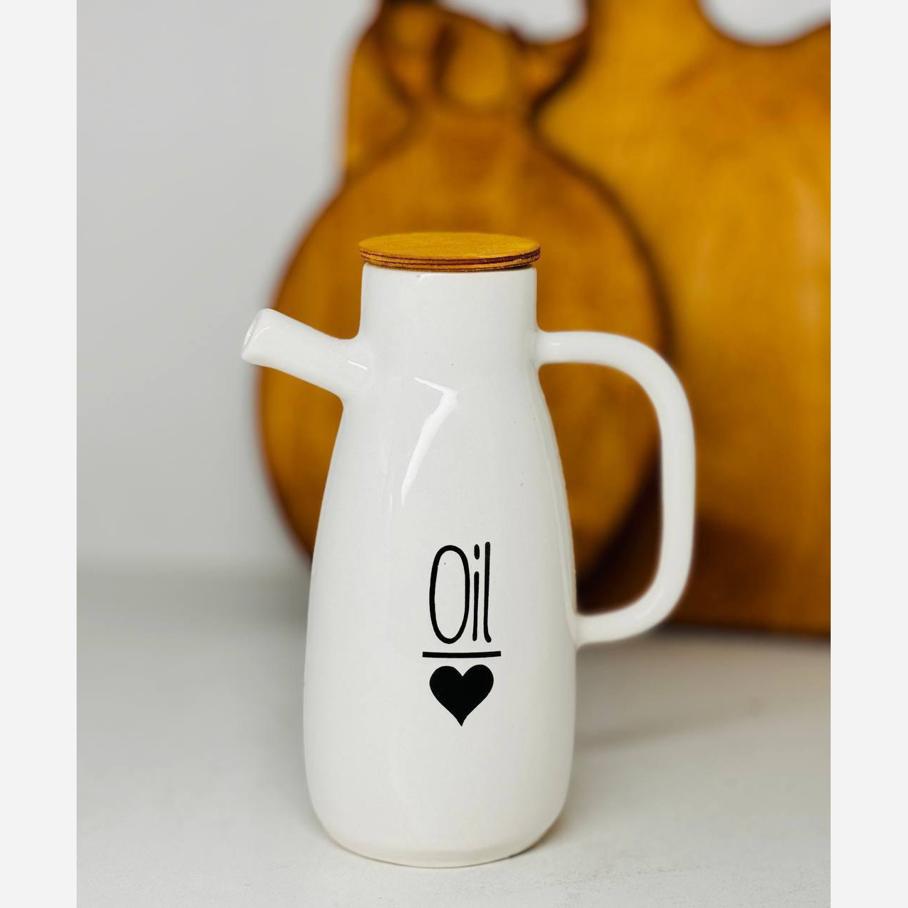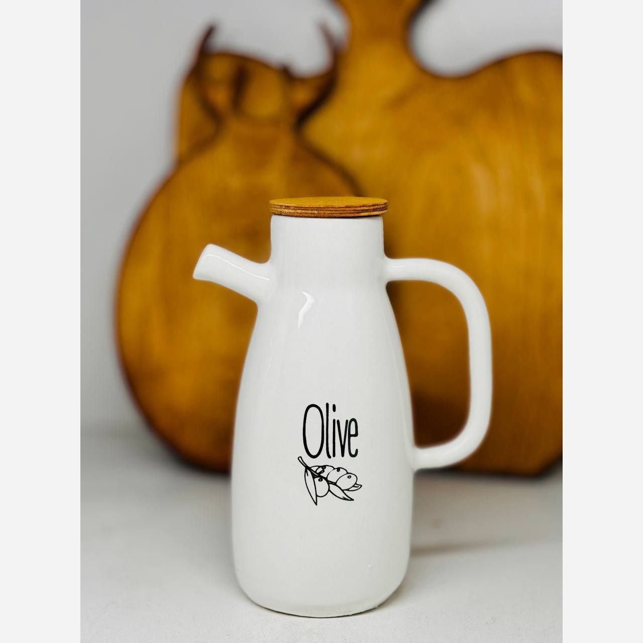 جنس سرامیک لعاب سفید مدل دسته دار درب بامبو مناسب برای نگهداری روغن