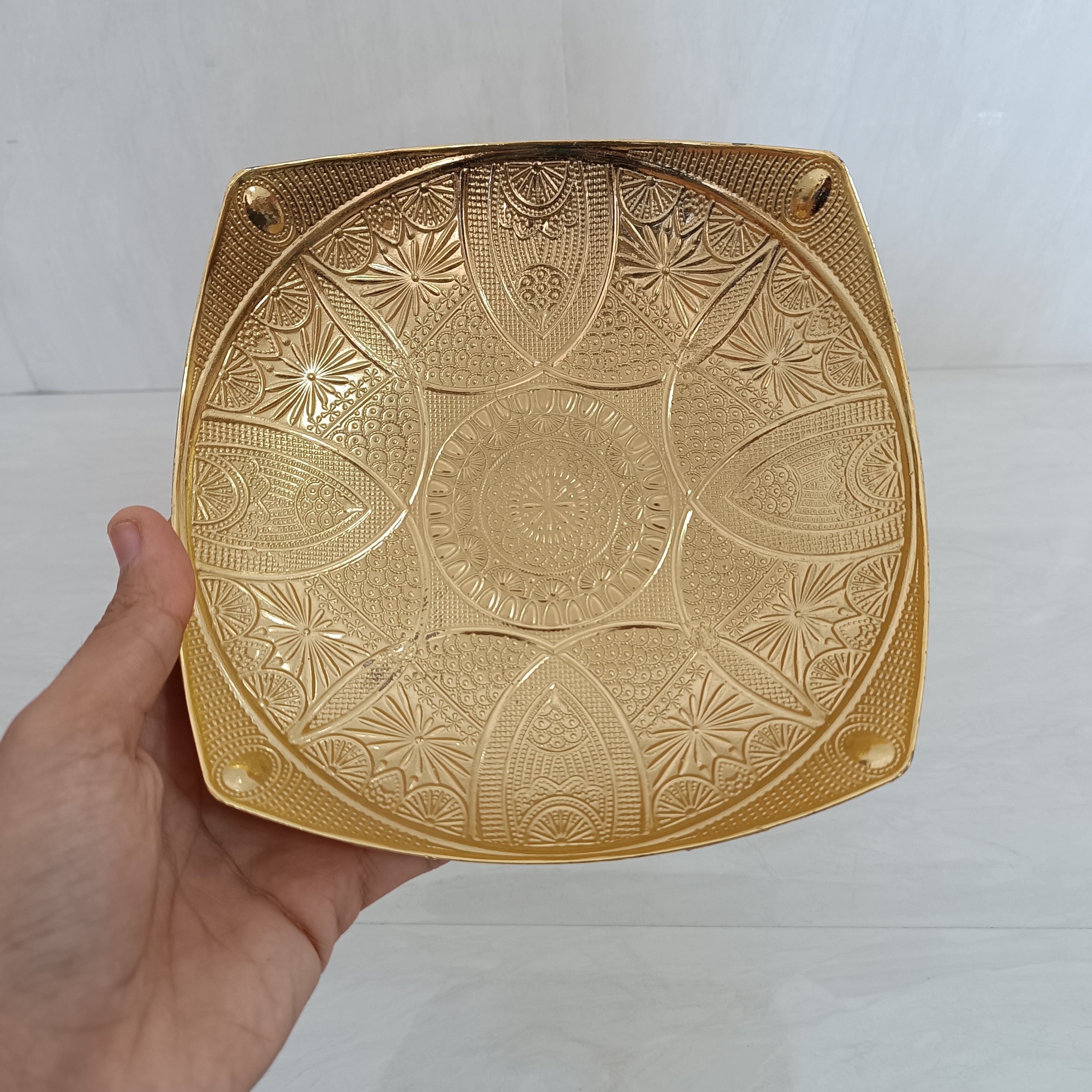 شکلات خوری و شیرینی خوری مربع سیلور پایه دار مارک آسیا طلایی مبلمونسرا مدل 265200