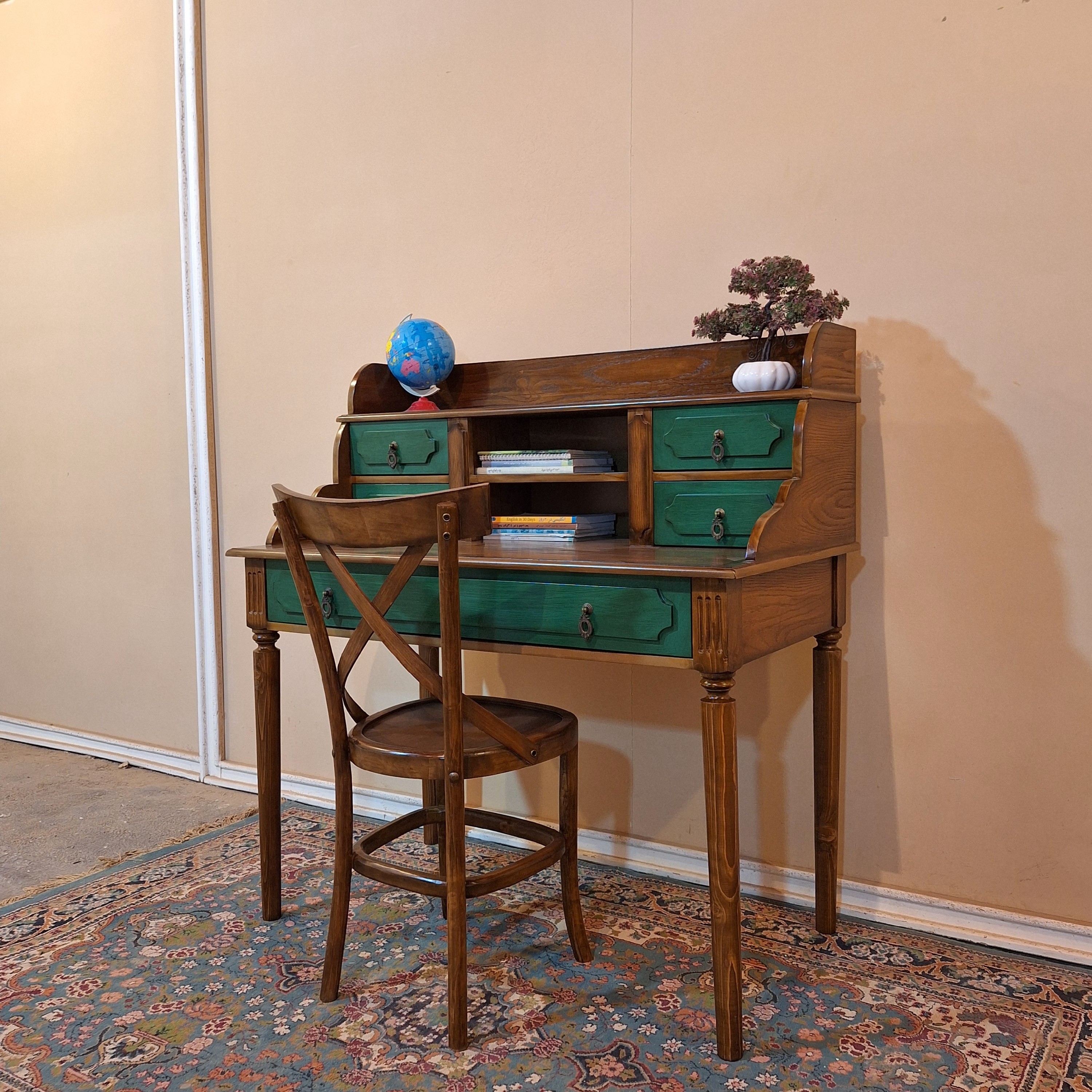 میز تحریر کلاسیک سبز قهوه ای با صندلی ضربدری مبلمونسرا مدل 218994