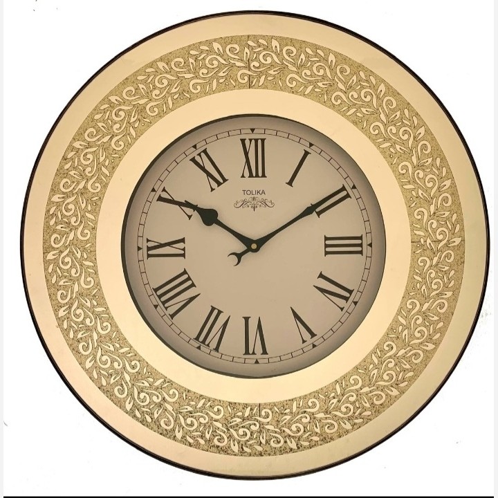 ساعت دیواری آینه ای اسید شویی بهمراه دو گوشواره با قاب چوبی و زمینه شاین دار موتور آرامگرد و دو سال ضمانت موتور