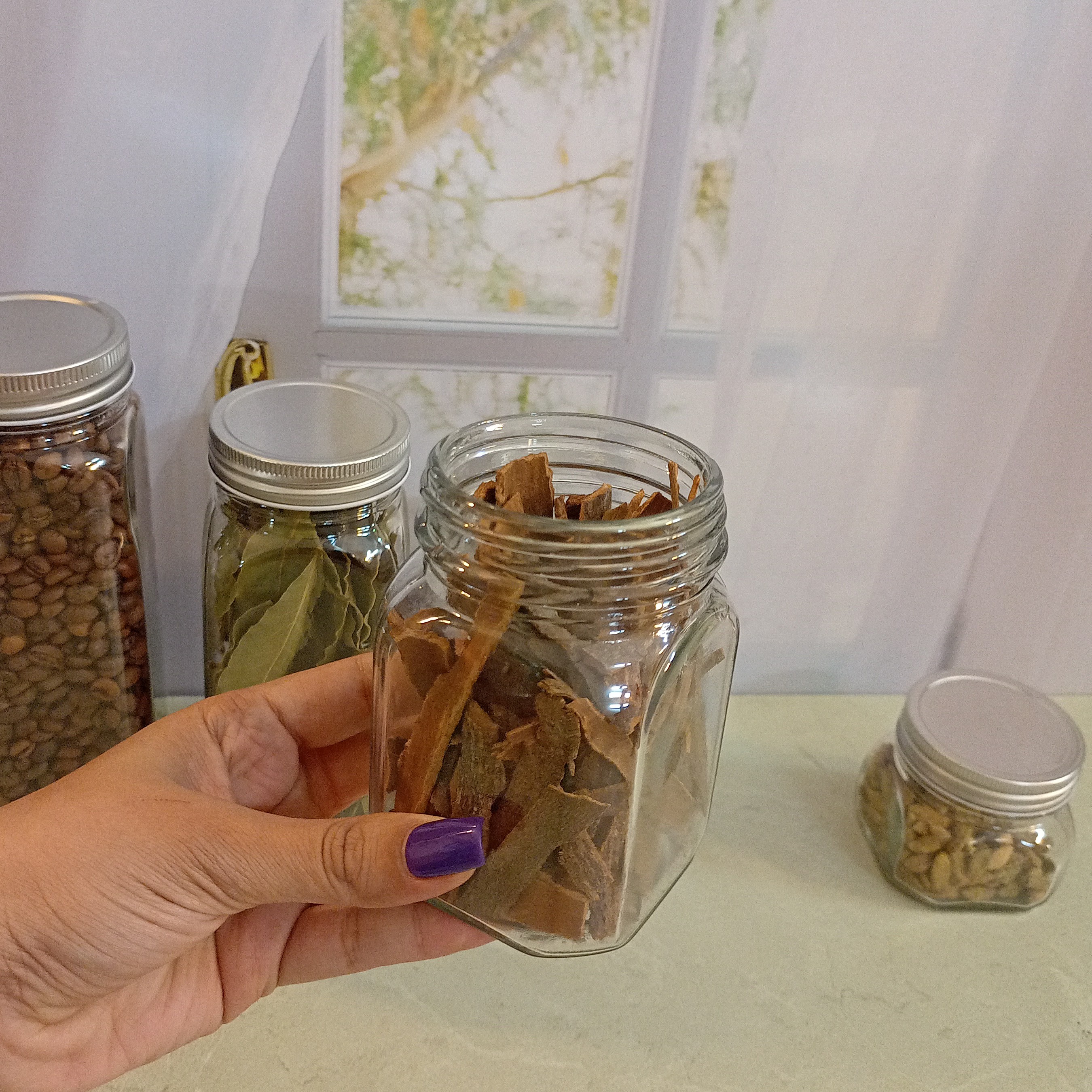 بانکه حبوبات اقتصادی ارتفاع 11 سانت شیشه ای مربعی درب فلزی مبلمونسرا مدل 287884