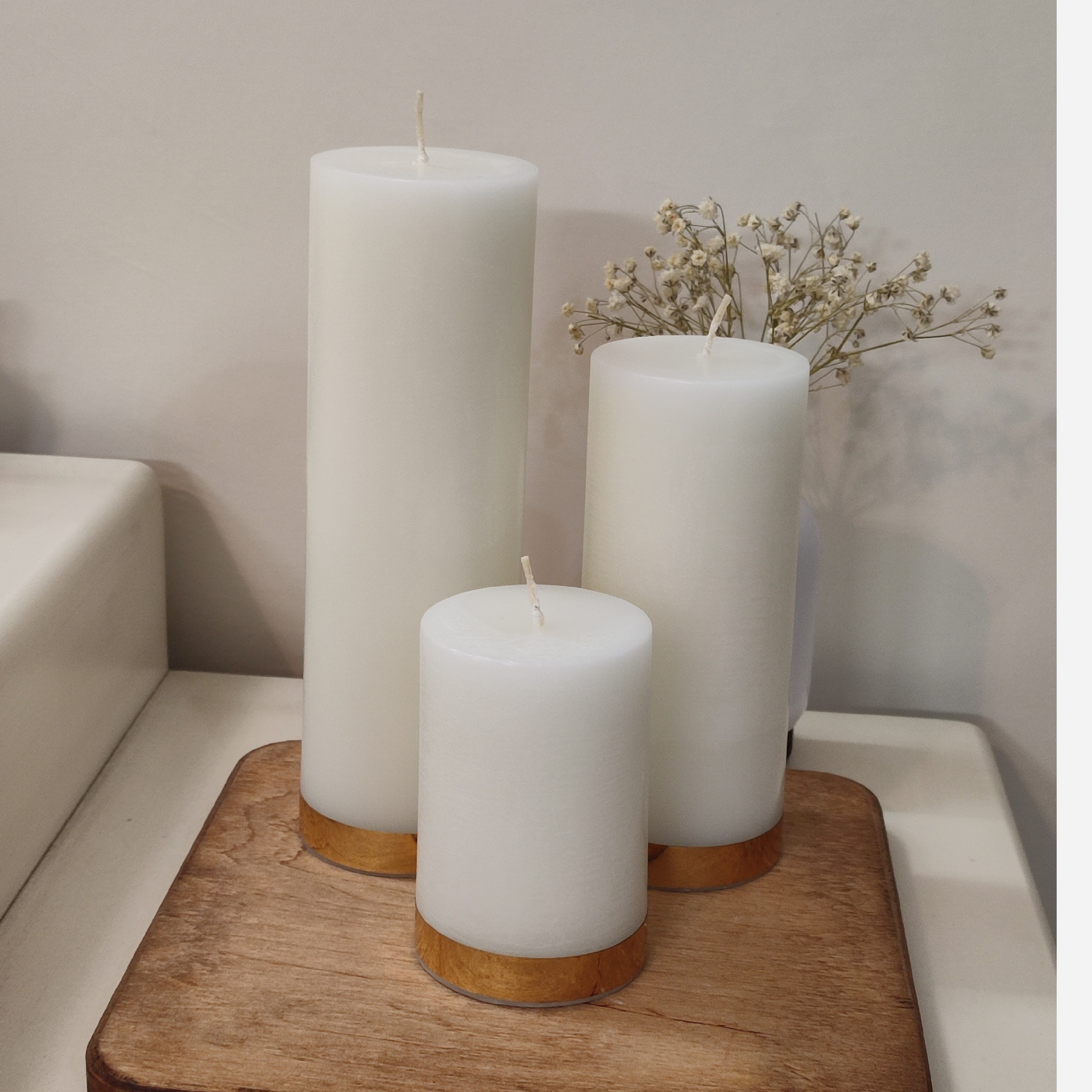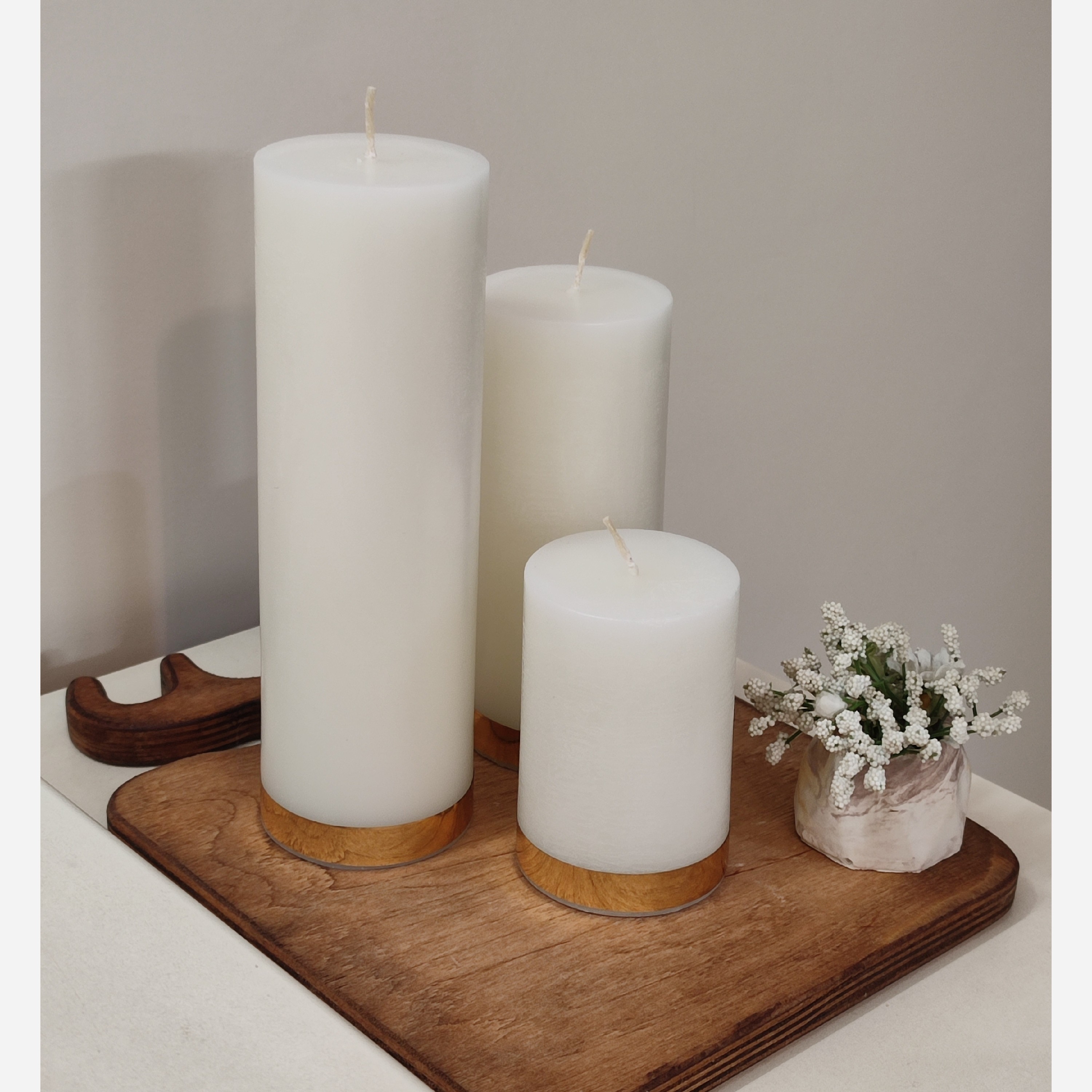 شمع استوانه سه عددی نوار طلایی مبلمونسرا مدل 280196