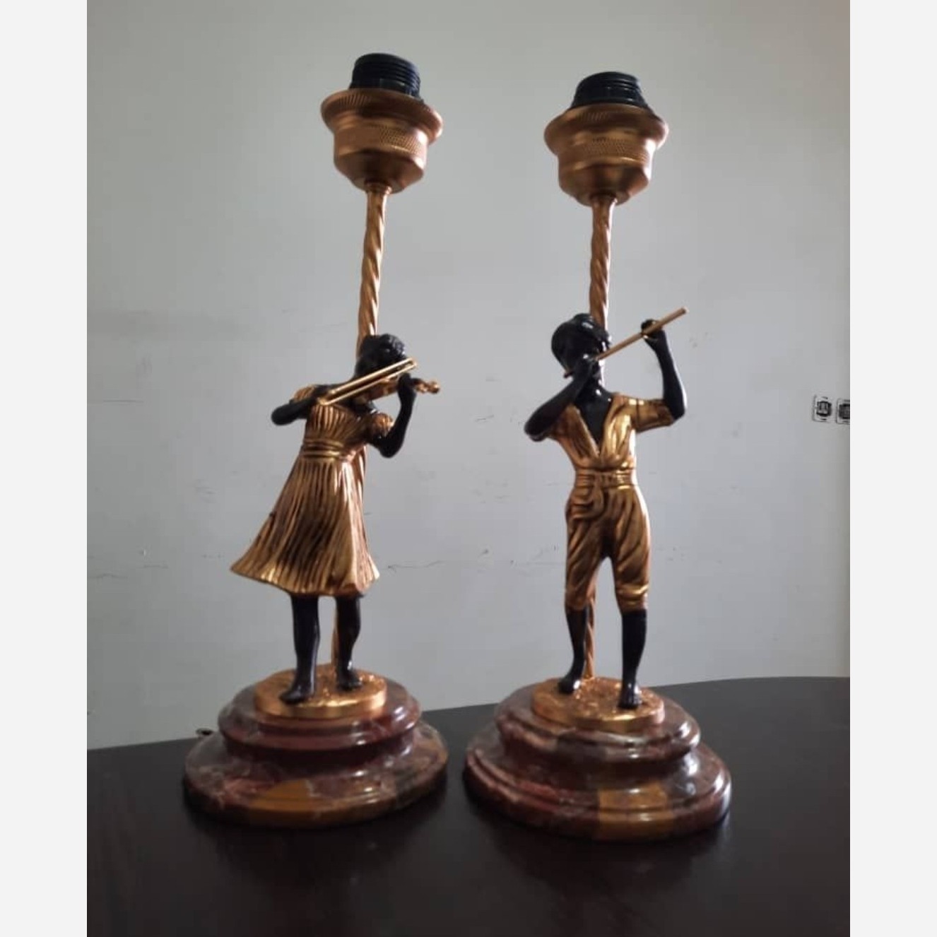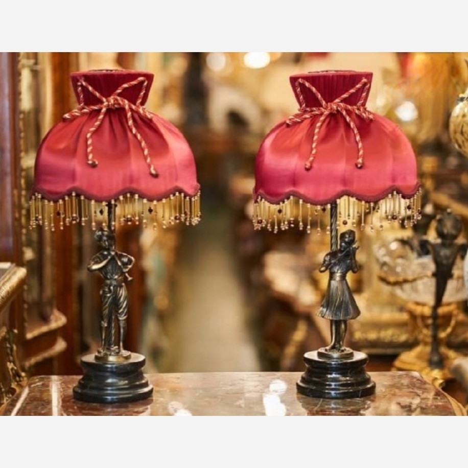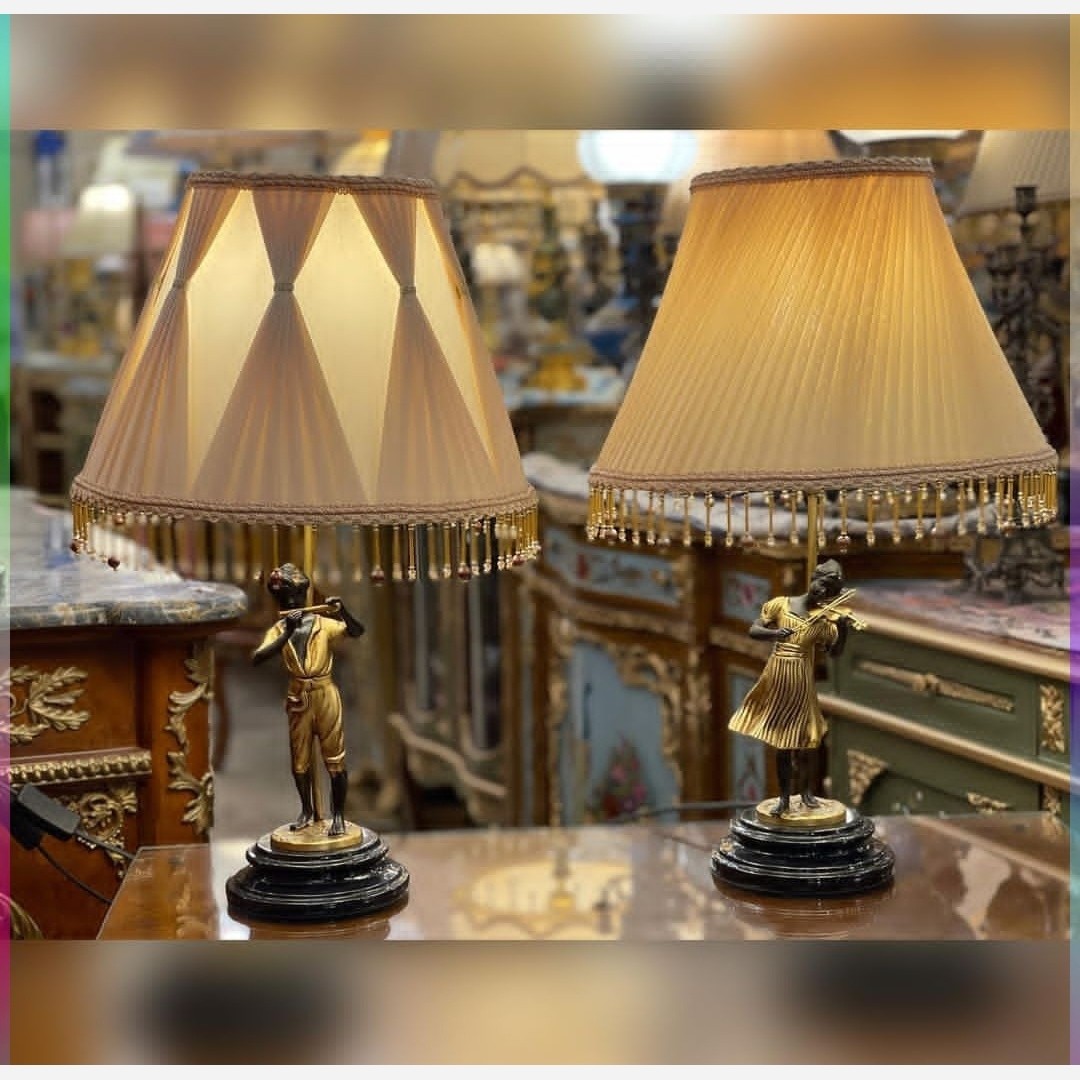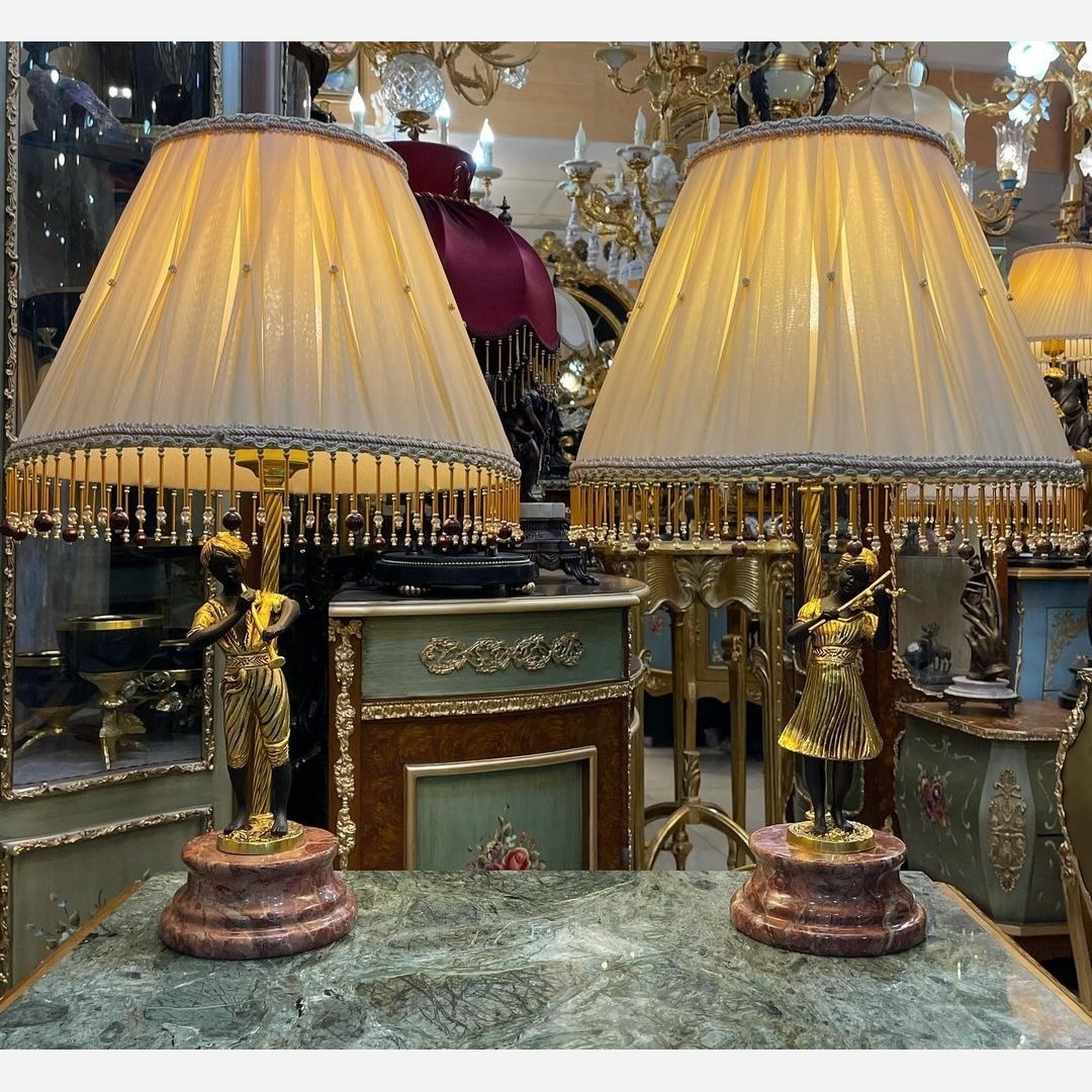 آباژور رومیزی برنز مجسمه دار آدم و حوا دختر و پسر برنزی برنجی پتینه فورتیک طلایی آباژور شیک جدید مبلمونسرا مدل 231154