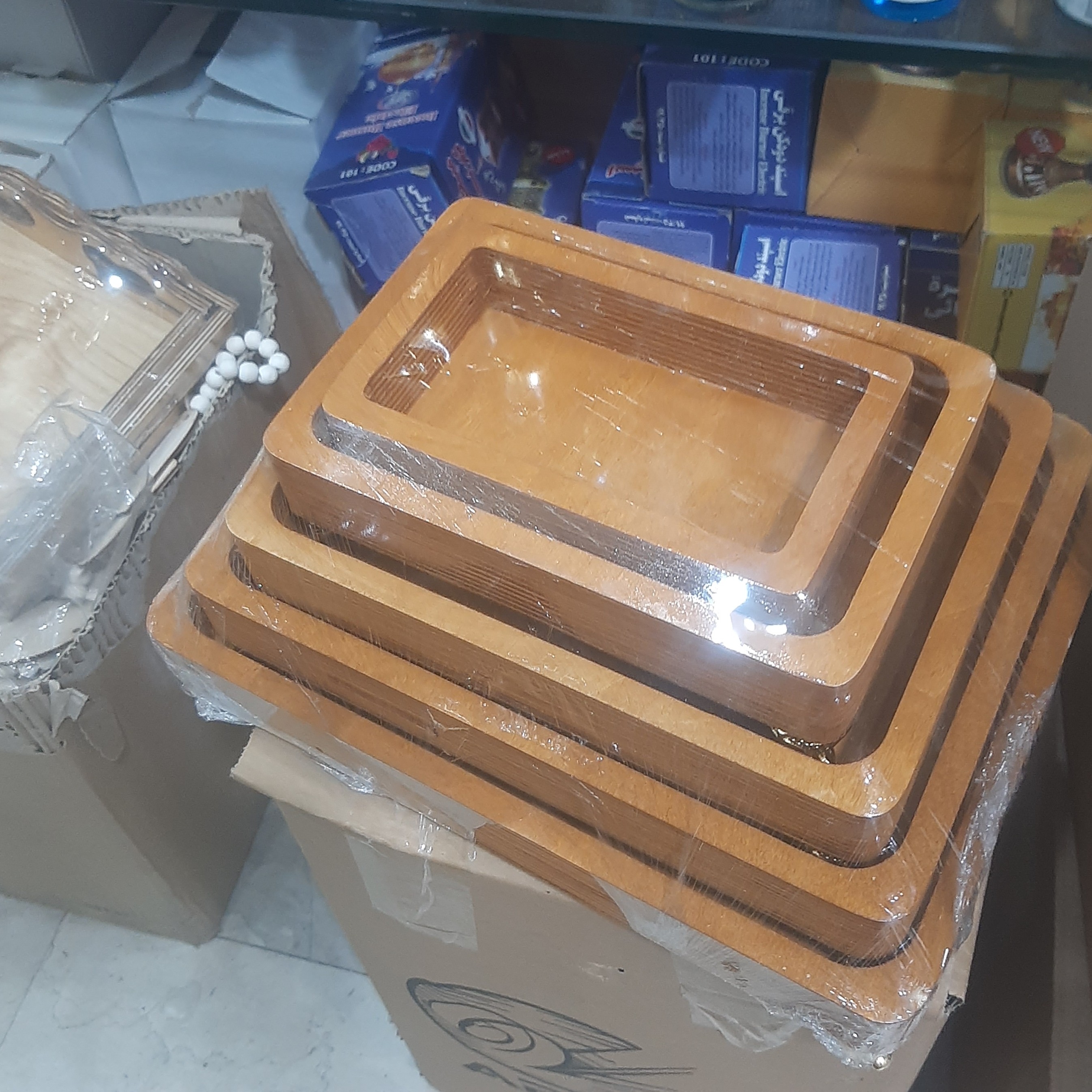 سینی های پنج تیکه چوبی پایه دار مبلمونسرا مدل 275320