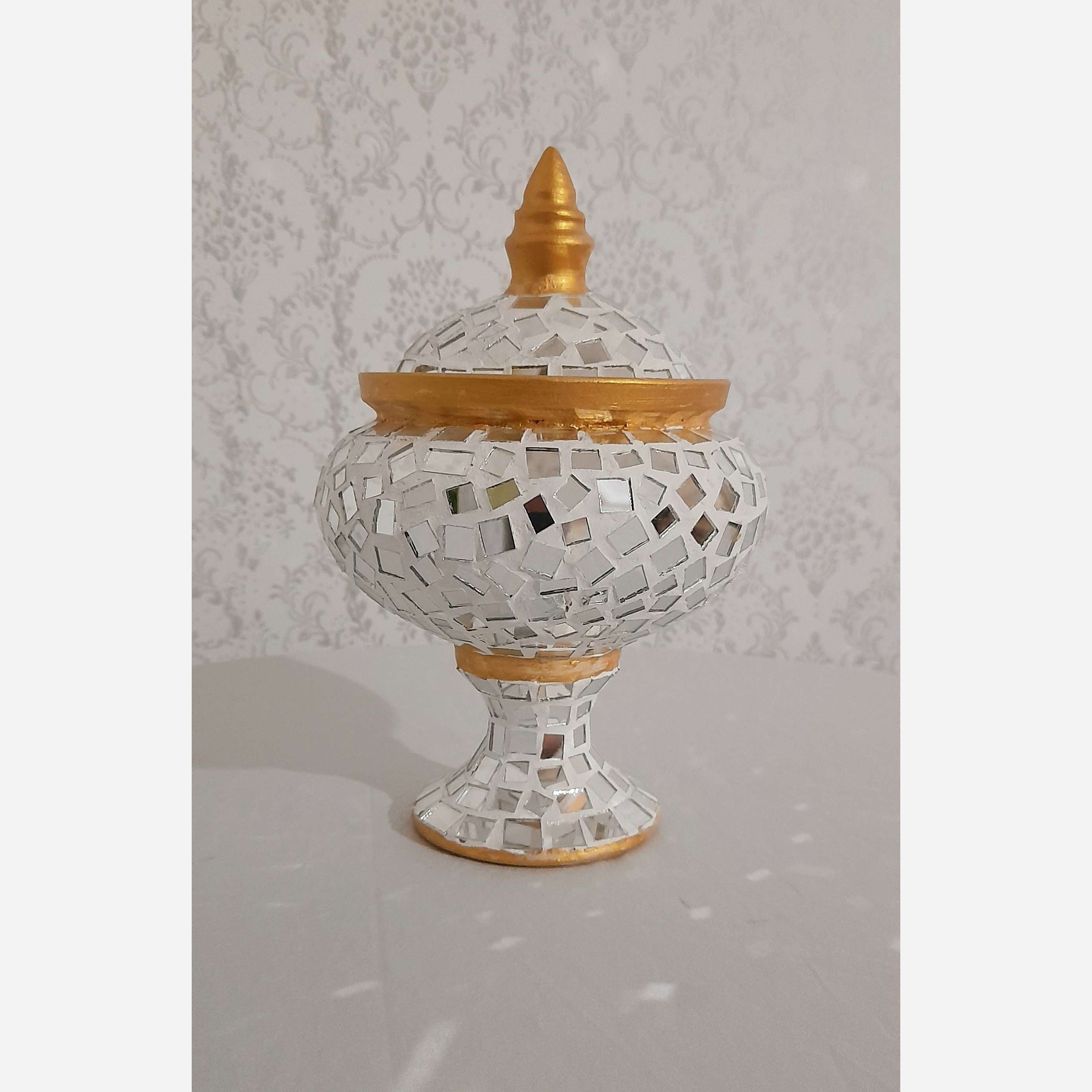 شکلات خوری آینه کاری شده، قندان، مصرفی و دکوری، طلایی و سفید مبلمونسرا مدل 295478