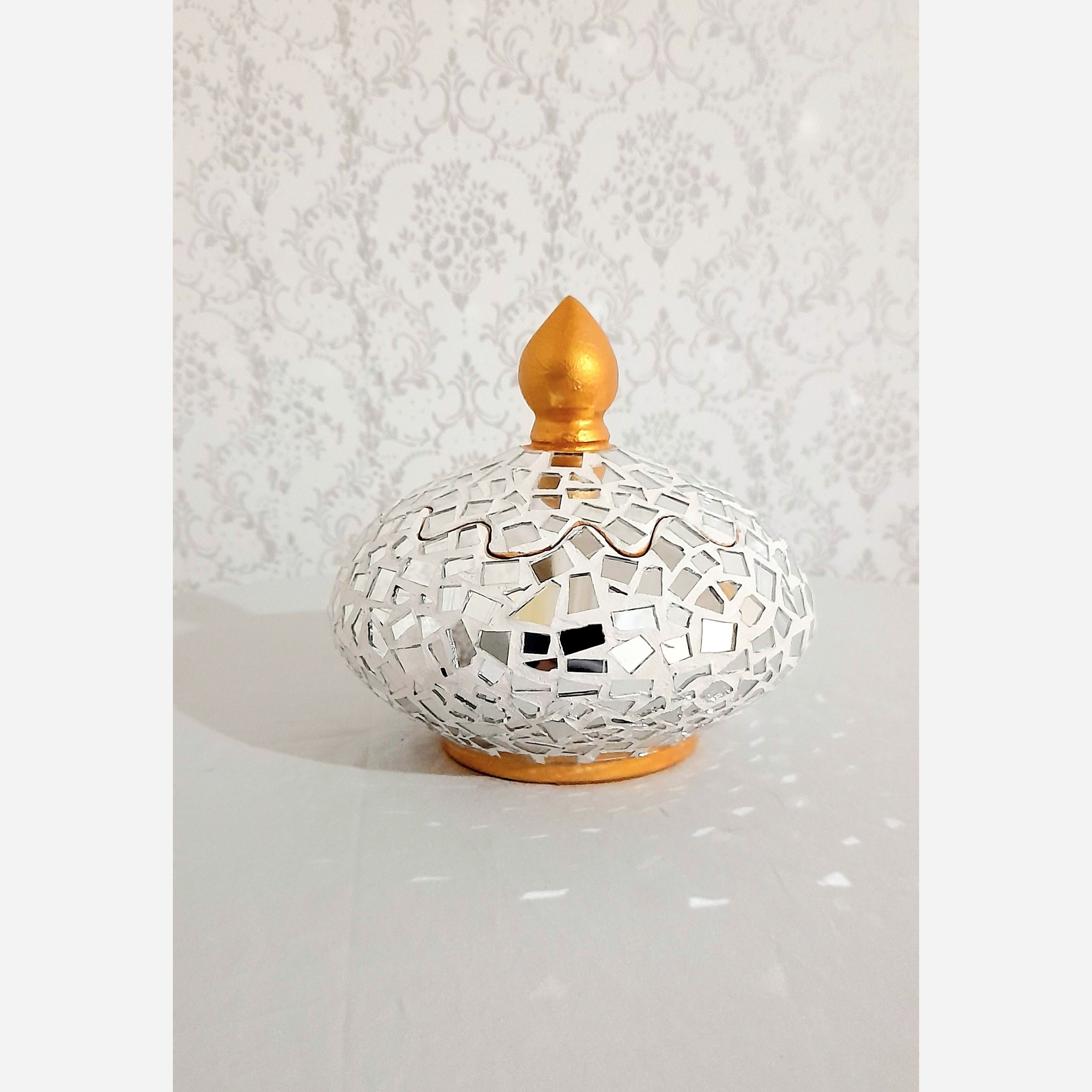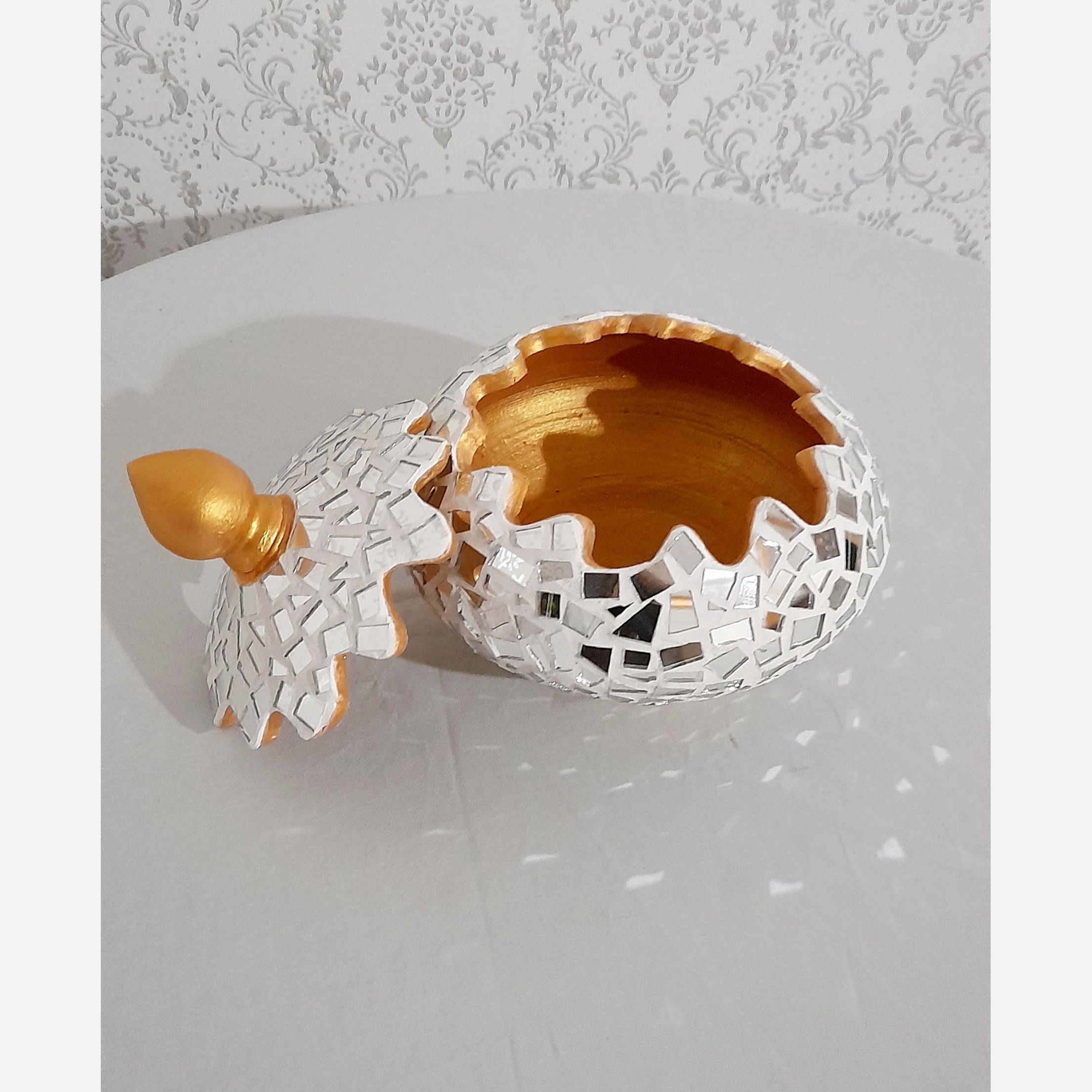 شکلات خوری آینه کاری شده شیک رنگ سفید و طلایی مصرفی و دکوری قابل سفارش در رنگ و طرح های دلخواه از طریق چت باسلام. فروش به صورت خرده و عمده